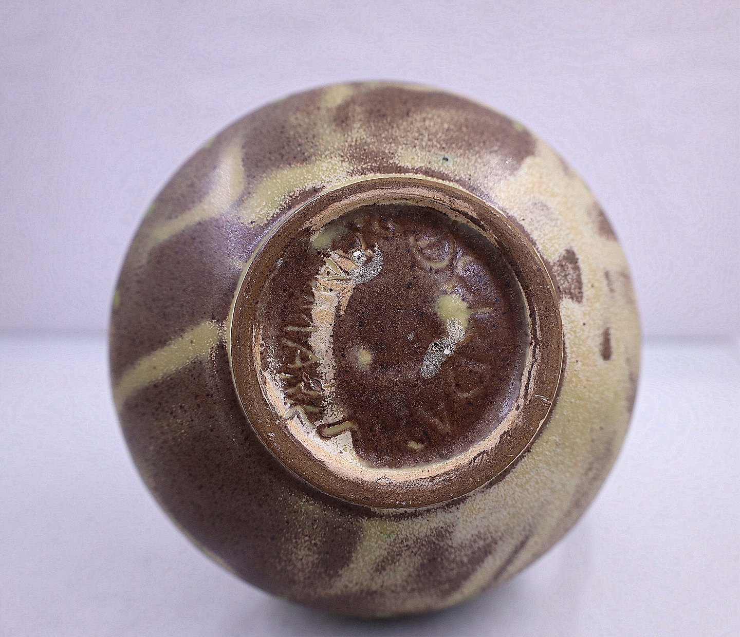 Dybdahl Keramik. Tekande med låg. Tekanden er grøn med gule blade.