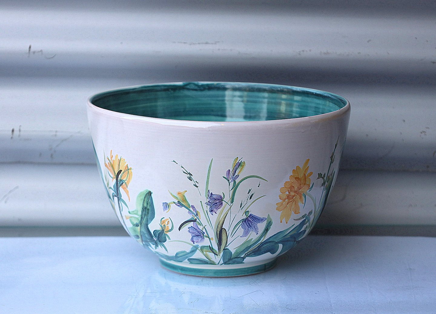 Torben Keramik, Denmark, 66. Keramik skål hvidglaseret og dekoreret med grøftekantsblomster.