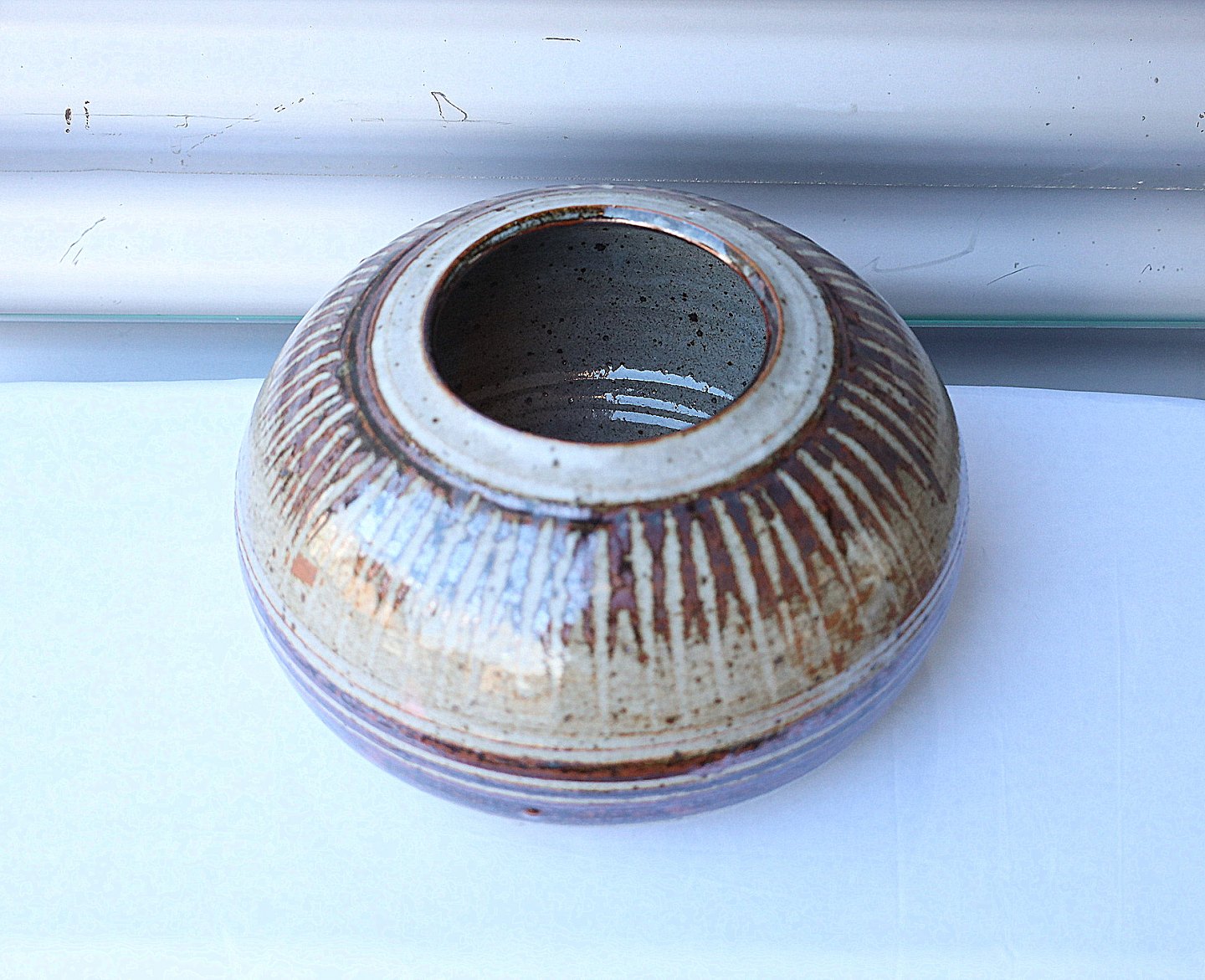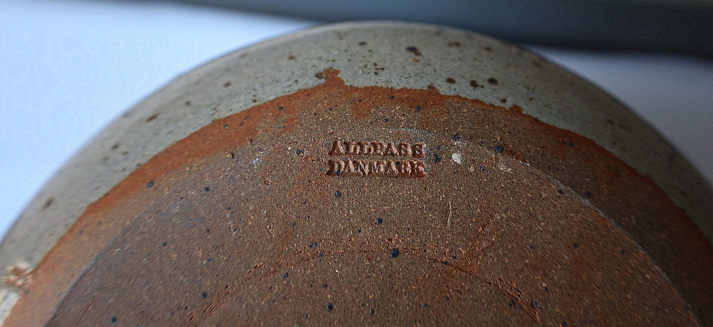 Allpass, Danmark. Helle Allpass keramik. Rund lertøjsskål i brune nuancer, indvendig er der lavet kant til bloklys.