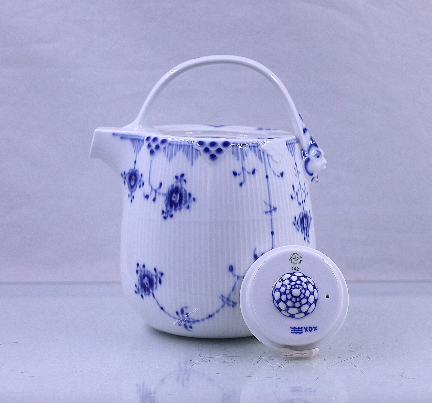 Royal Copenhagen. Tekande nr. 142, låg nr. 143. Blå Elements tekande