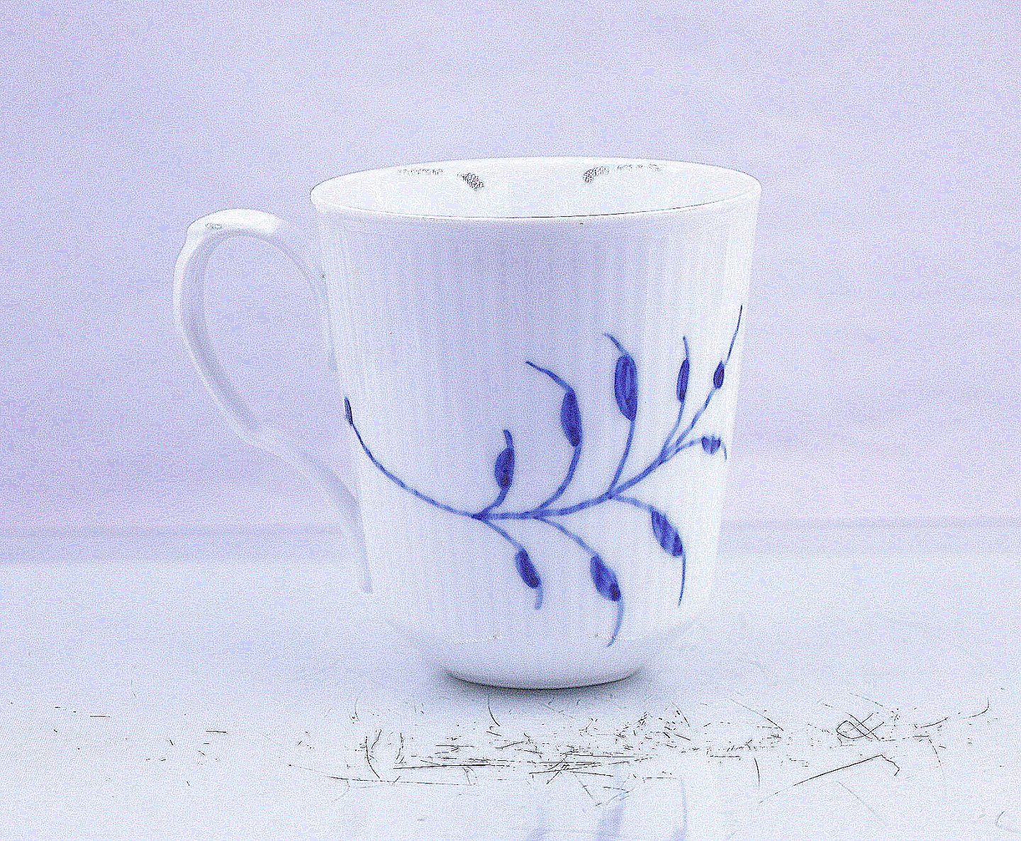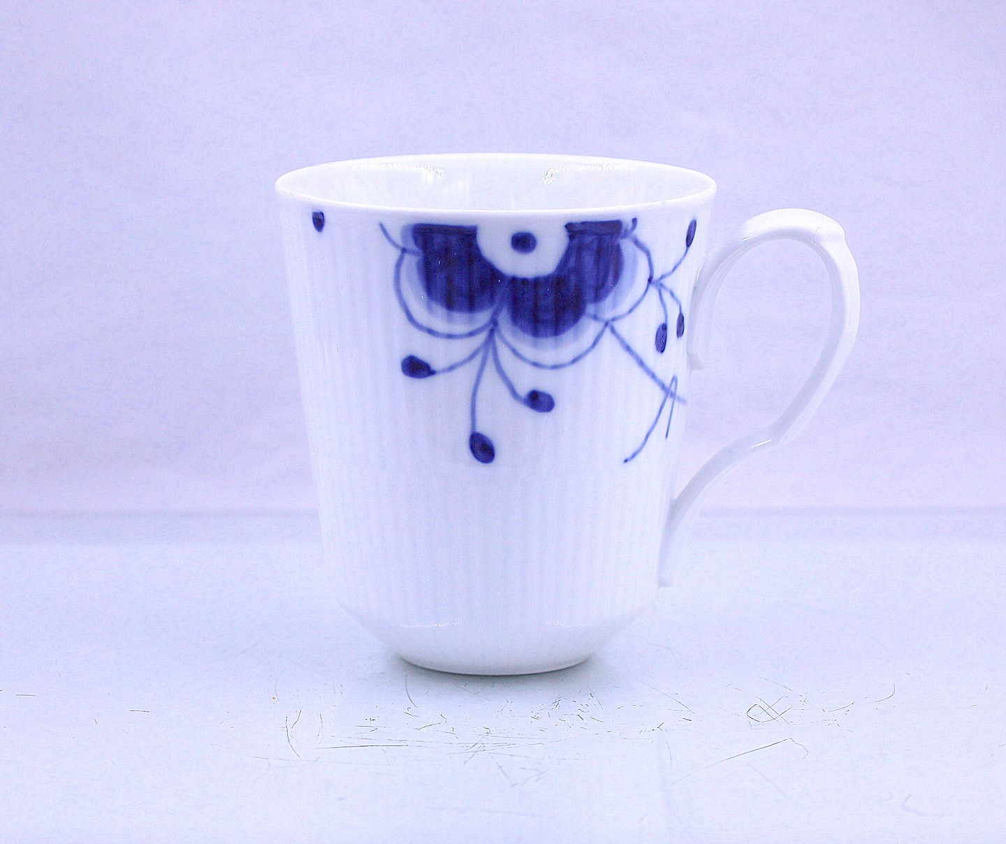 Royal Copenhagen. Mega musselmalet krus med hank nr. 403, kruset kan indeholde 37cl. Mega musselmalet er i de klassiske hvide og blå farver. Blåt mega riflet