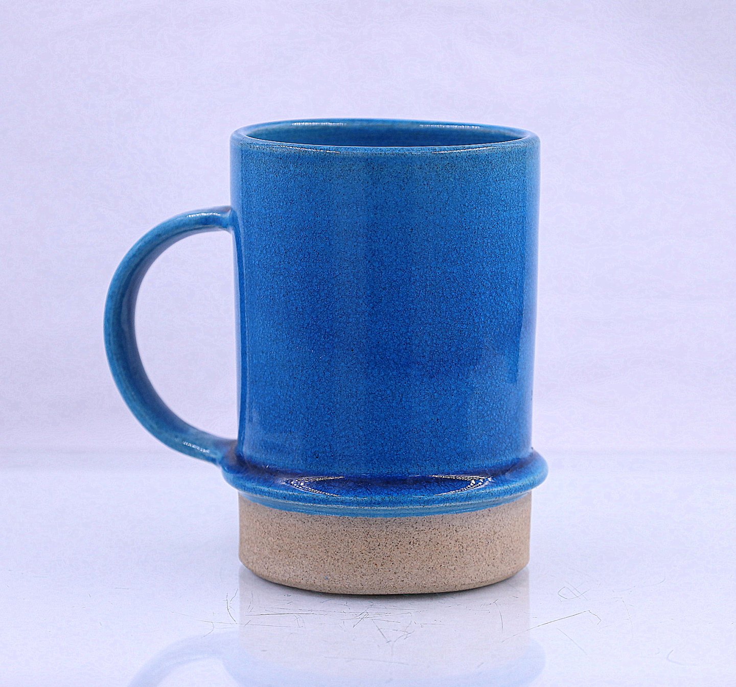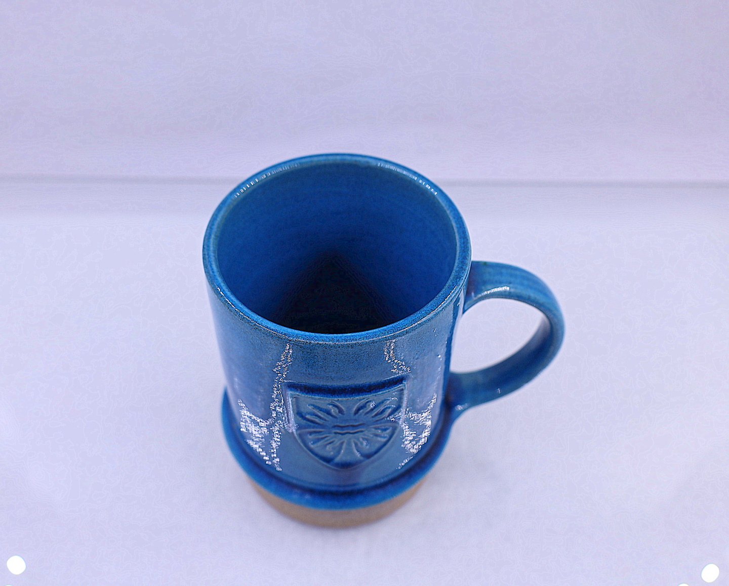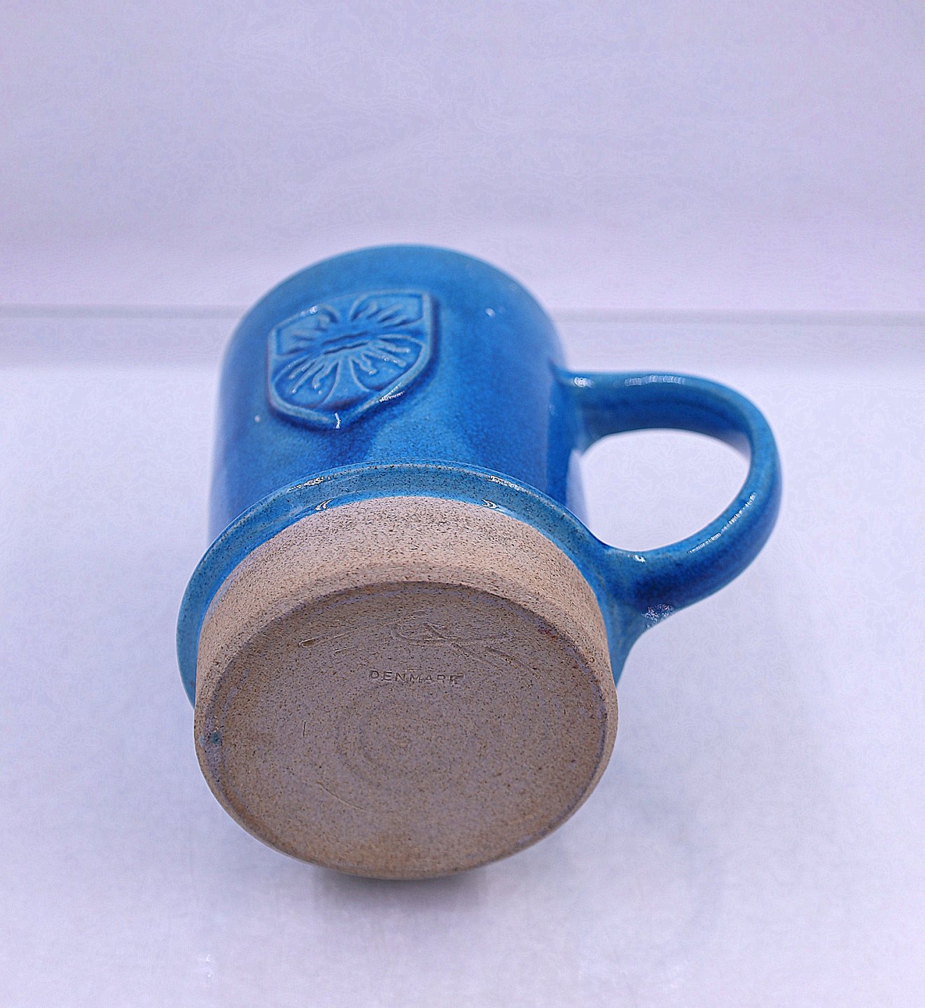 Kähler = HAK. Blåt stentøjskrus. Kruset har påsat hank og er i en meget klar blå farve. Der er påsat segl på kruset