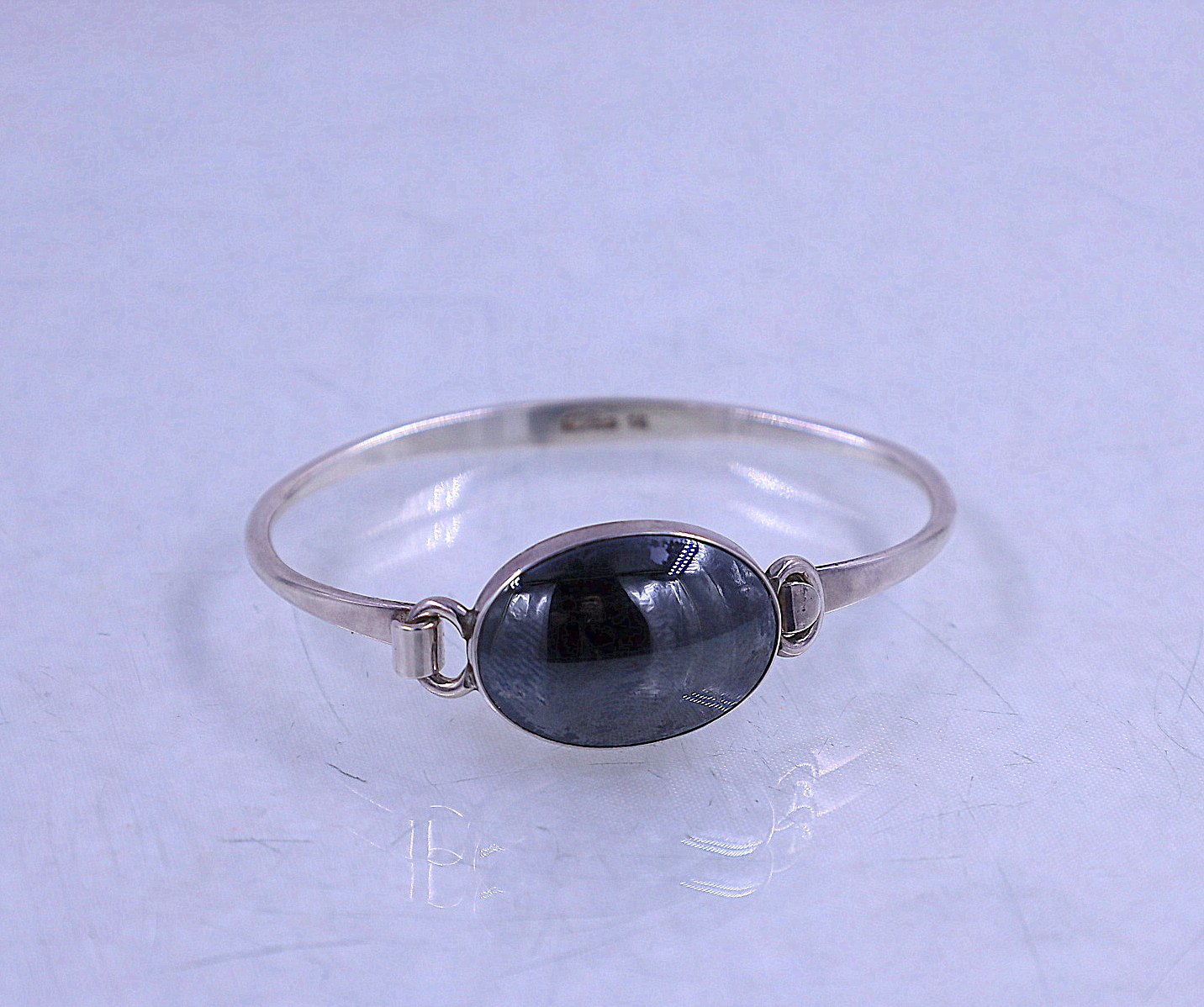 Niels Erik From. Vintage armring med sort onyx frontplade. Armringen er sølv 925s, og lukkes med kroglås
