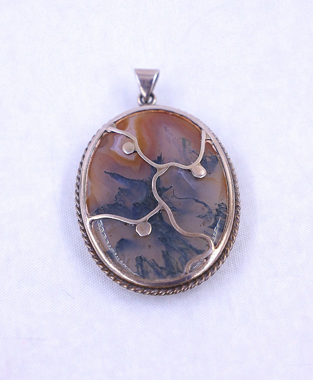 Fritz Johannes Rosleff, Norway. Ovalt marmit-"sten" vedhæng, marmitten er indfattet i sølv. Sølv 830s.