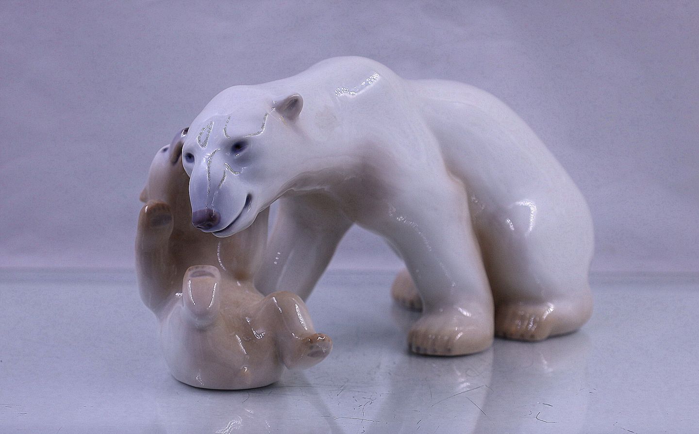 Bing & Grøndahl. Isbjørn med unge, nr. 2239. Mor og barn. Figuren er 1. sortering og i hel og fin stand