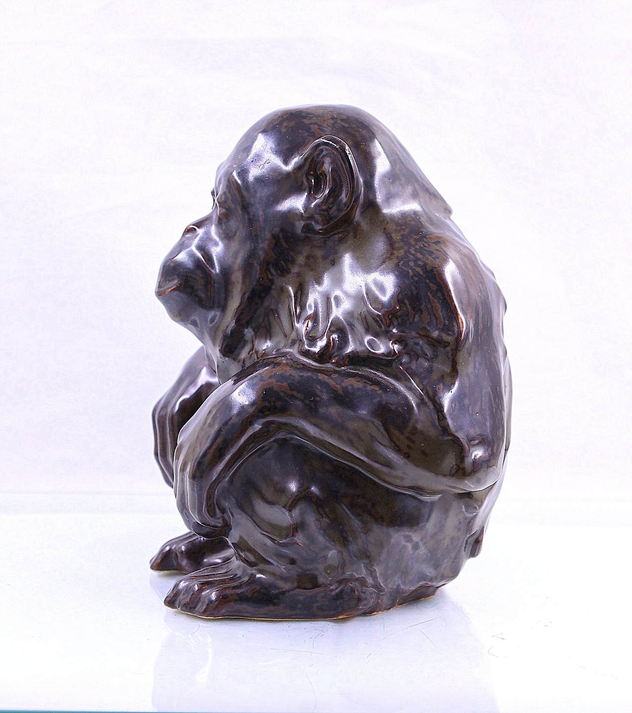 Bing & Grøndahl. Stentøjs figur af chimpanse, nr. 7091, Jean Renè Gauguin. Dansk stentøj, figuren er blank glaseret med sung glasur.