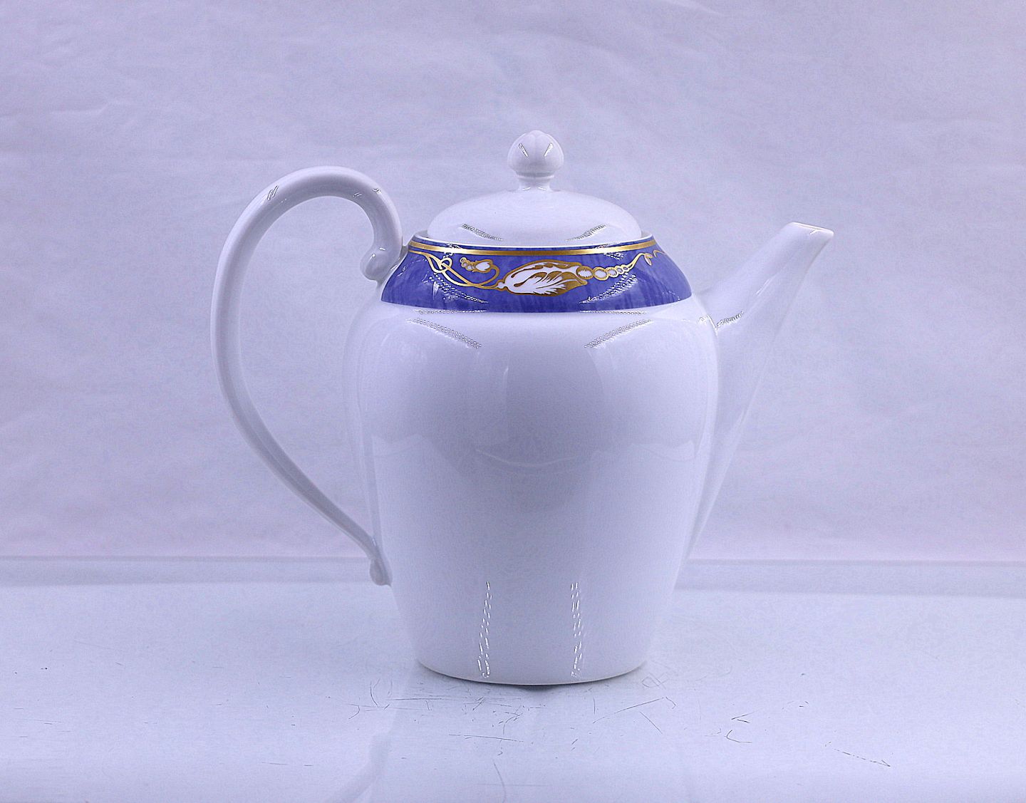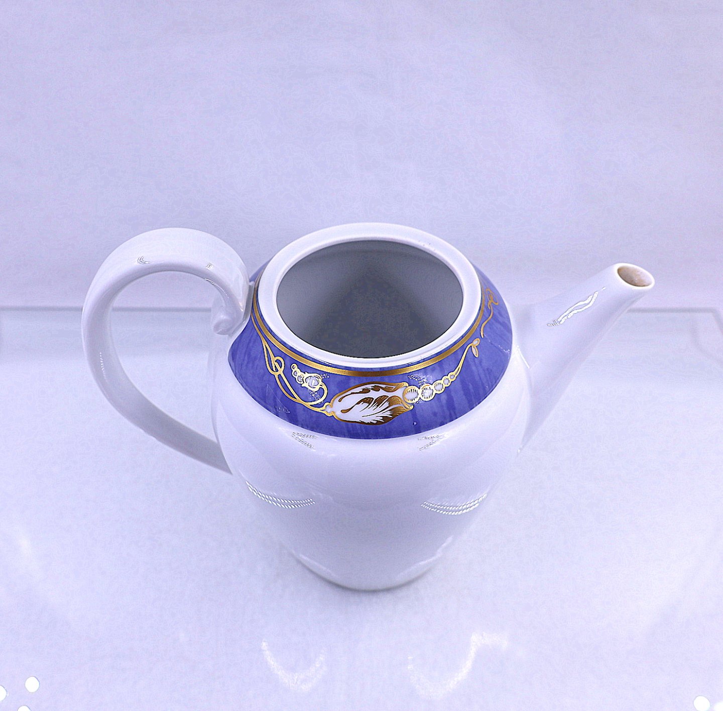 Royal Copenhagen. Kaffekande, Blå magnolia, nr. 128, kaffekanden er med låg, der har nr. 127. Kaffekande blå marmoret bort dekoreret med gylden blomsterknop.