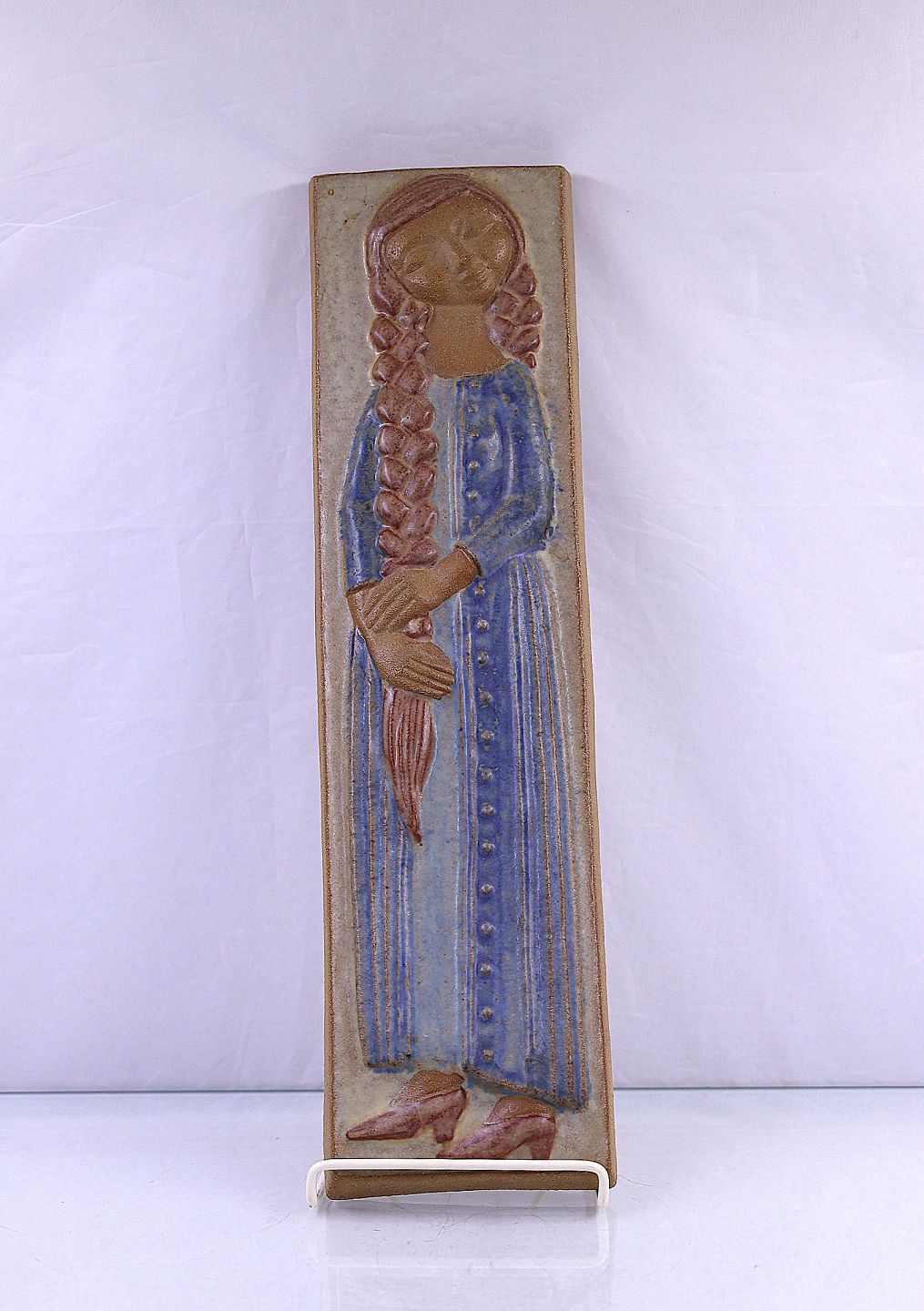 Michael Andersen & Sønner. Pige med lang fletning, hr. 6056. Dekoreret med blå, beige og brune farver.
