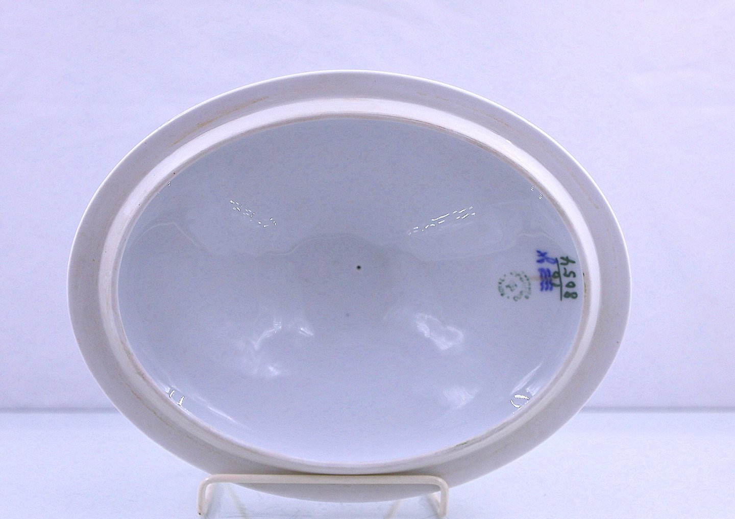 Royal Copenhagen. Blå Blomst, flettet. Ovalt lågfad Nr. 10/8054. Fad og låg har samme nr. Blå blomst hører til rækken af hvid og blå porcelæn Royal Copenhagen har lavet