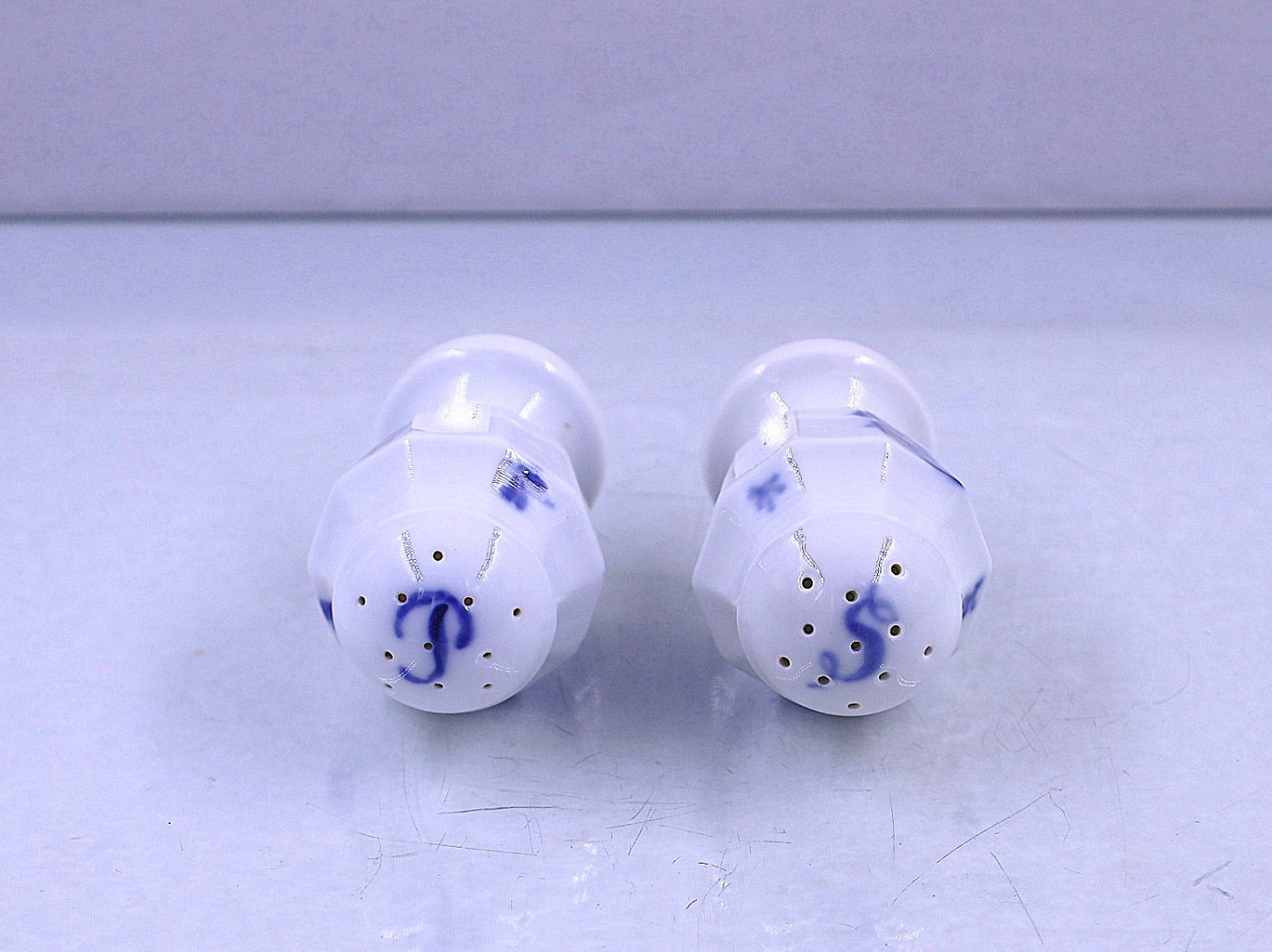 Royal Copenhagen. Saltbøsse nr. 10/8681l, peberbøsse nr. 10/8584, kantet. Blå blomst hører til rækken af hvid og blå porcelæn Royal Copenhagen har lavet.