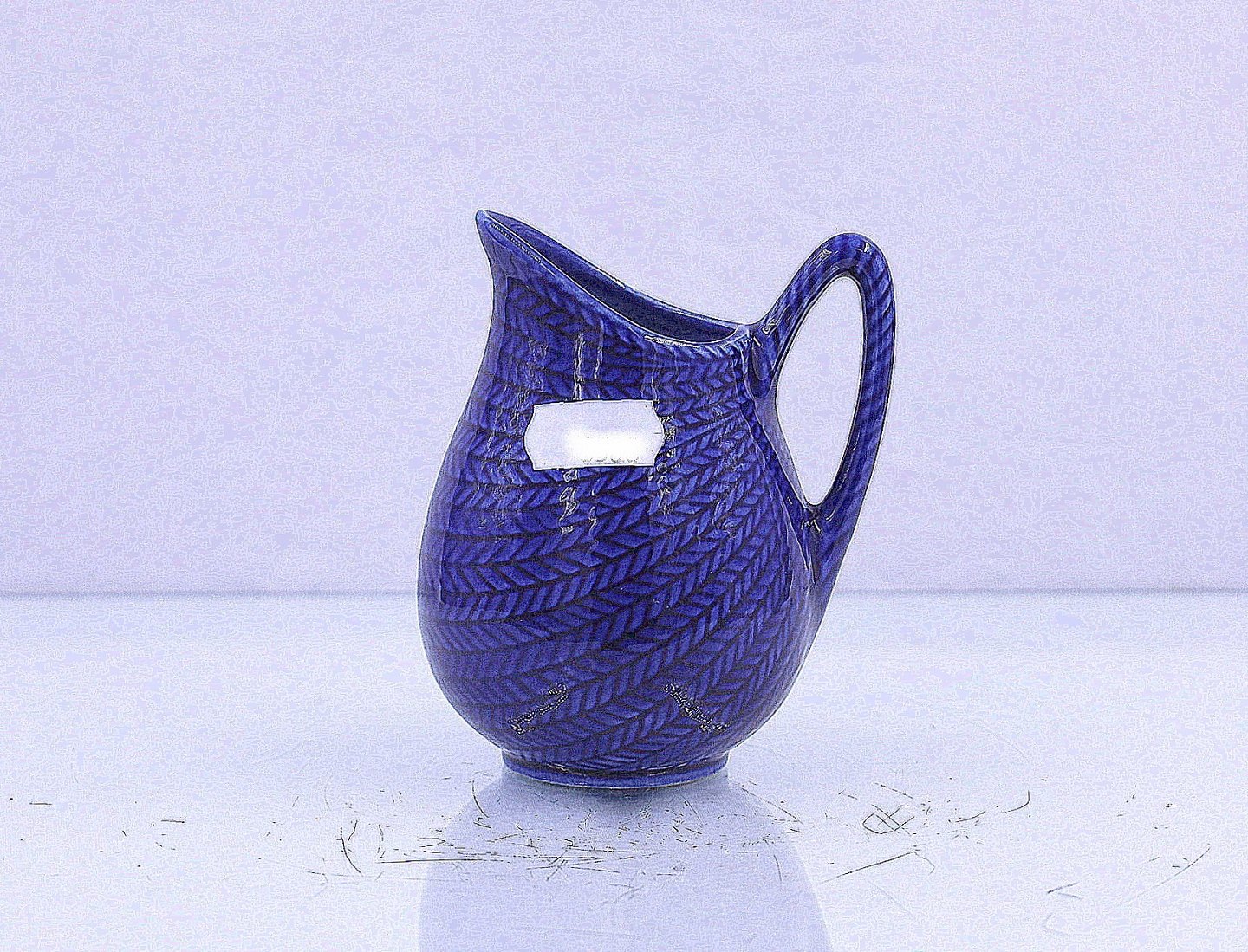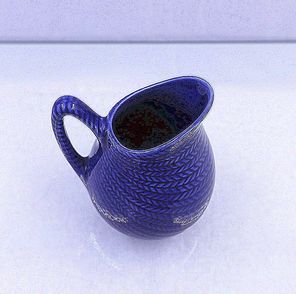 Blue Eld. Flødekande. Kanden er fremstillet i blå fajance med indstøbt sildebensmønster.