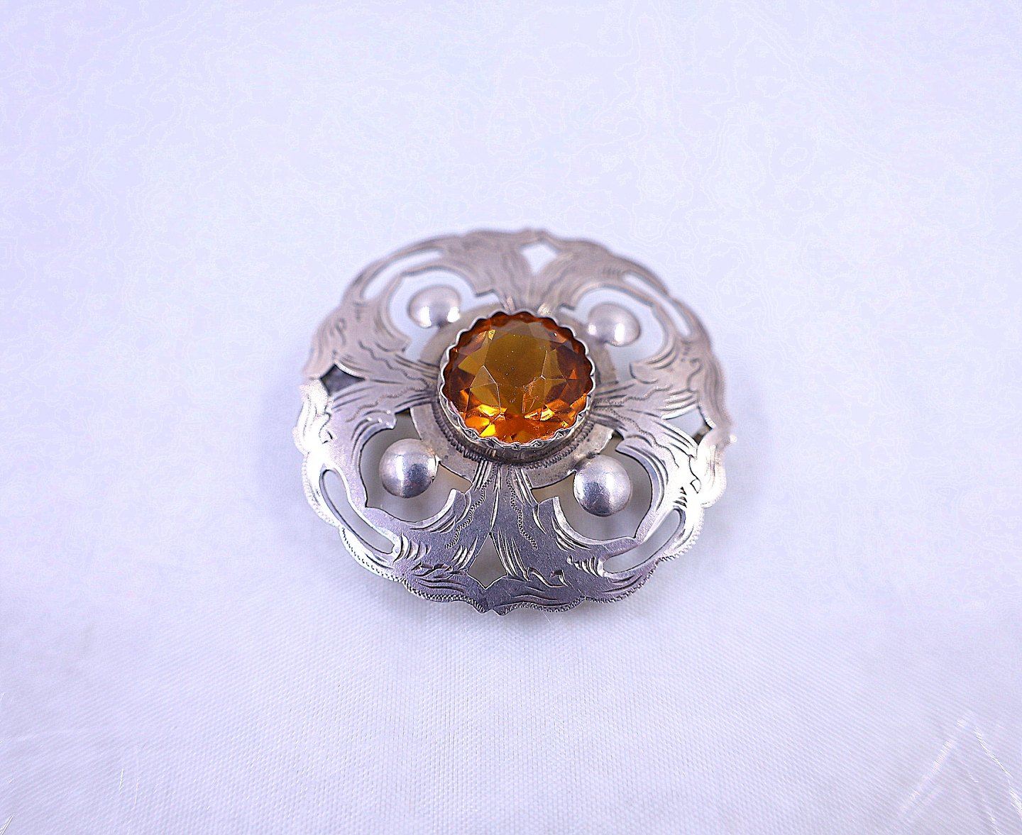 Stangerup & Larsen vintage broche, med ciseleringer i sølvet.