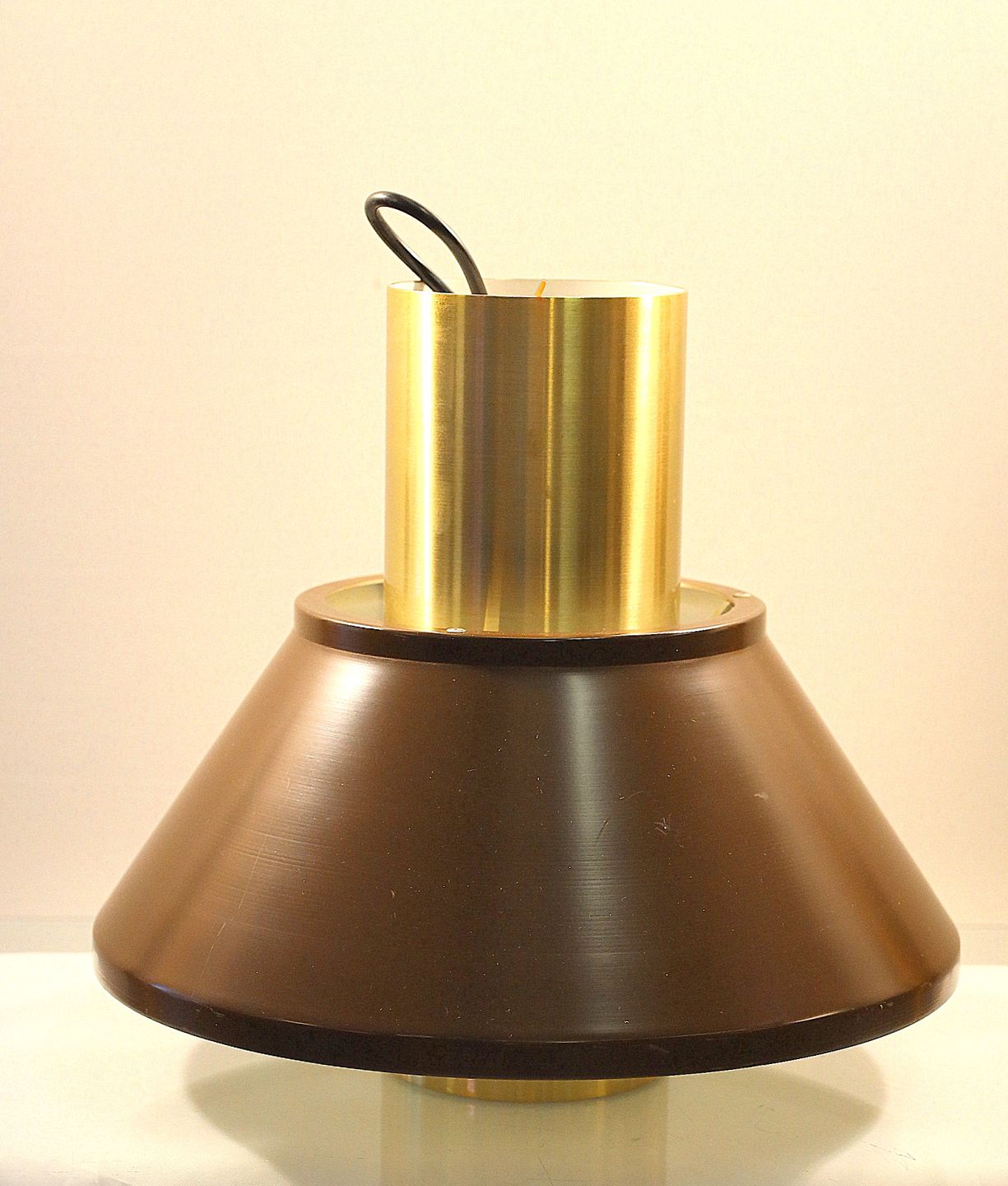 Pendel. Life pendel, brun skærm med messing rør, pendlen er, mat, hvidlakeret indvendig.