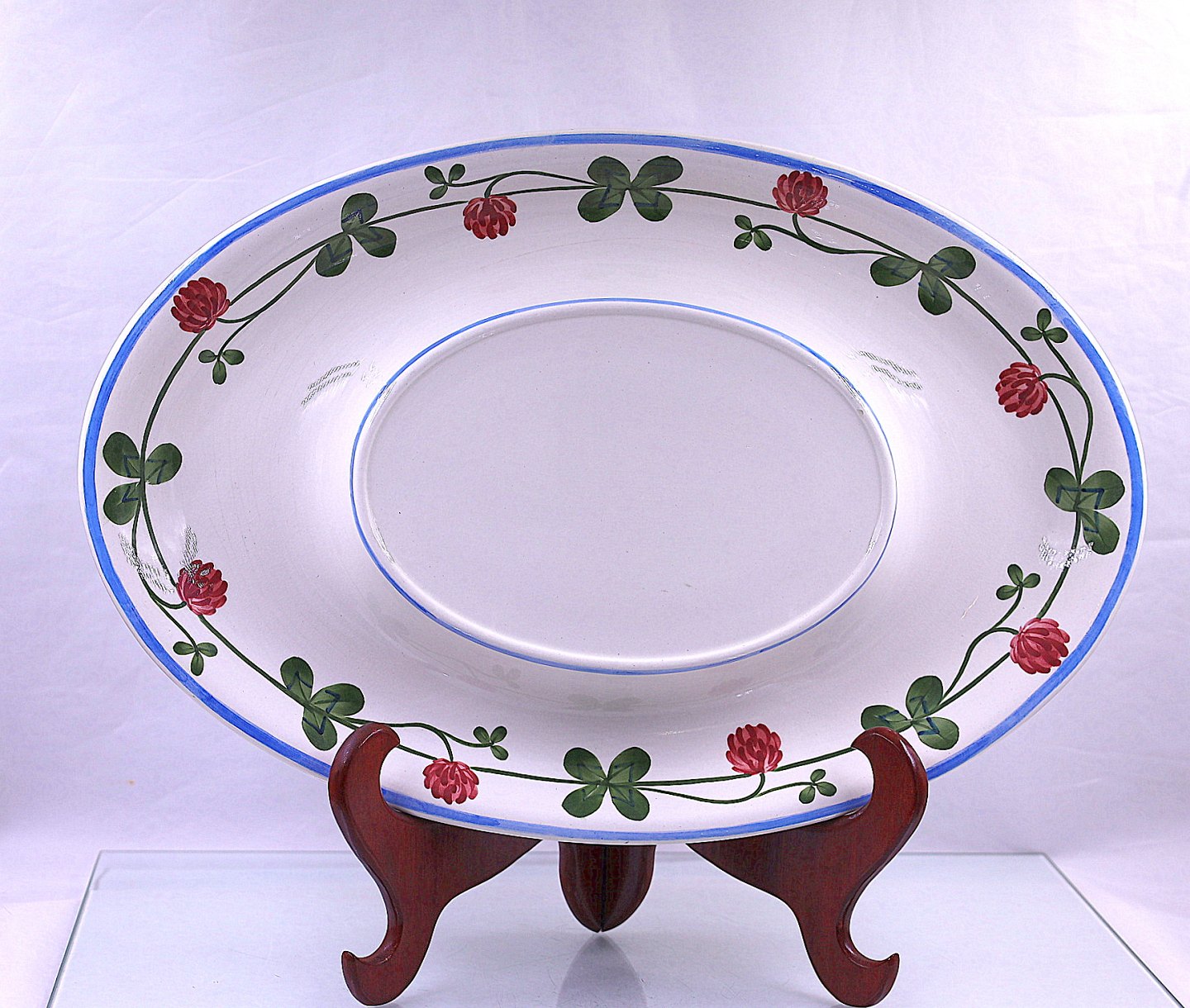 Aluminia. Rødkløver ovalt underfad til terrin, nr. 181/235. Fadet er dekoreret med rødkløverblomster og grønne blade.