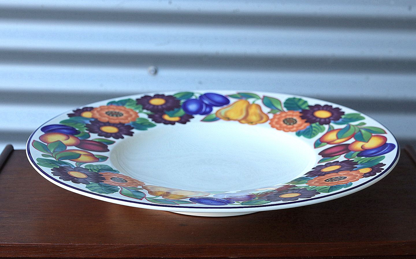 Royal Copenhagen. Gylden Sommer, nr. 1739733, rundt serveringsfad, fajance. Fadet er forberedt til ophæng.