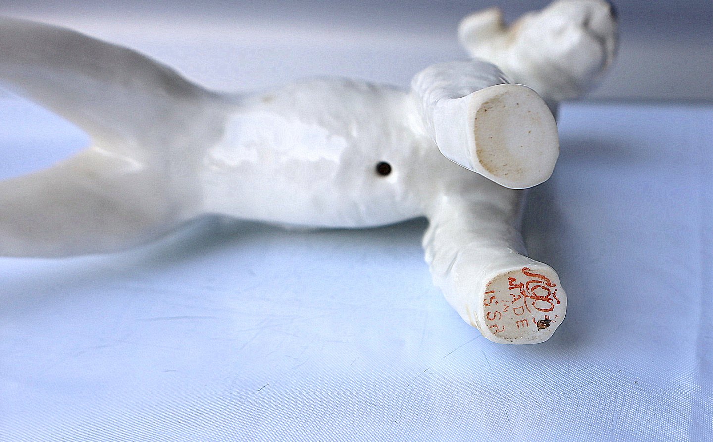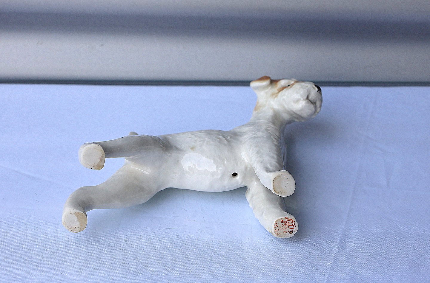 Made in USSR figur af Porcelænshund, hvid og abrikosfarvet. Snauser lignende hund, der er i fin stand.
