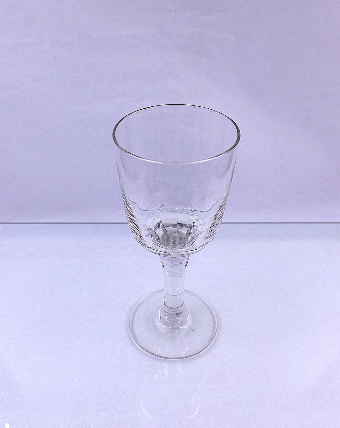 Formentlig Holmegaard Glasværk pokalglas med facet slibning under kumme.