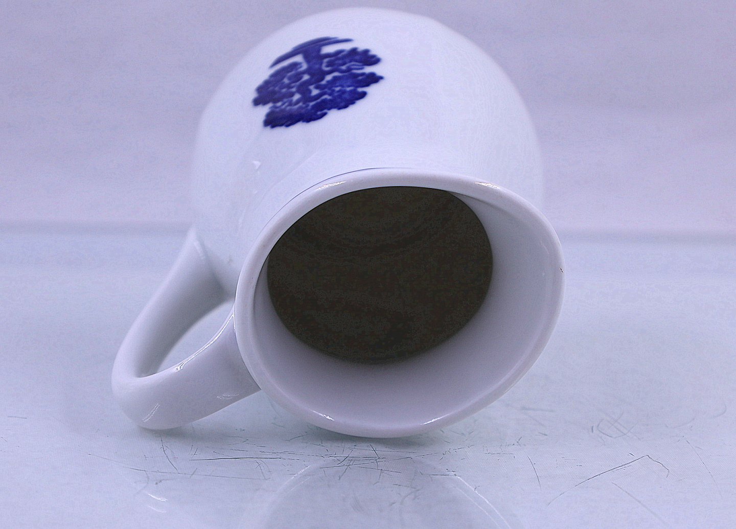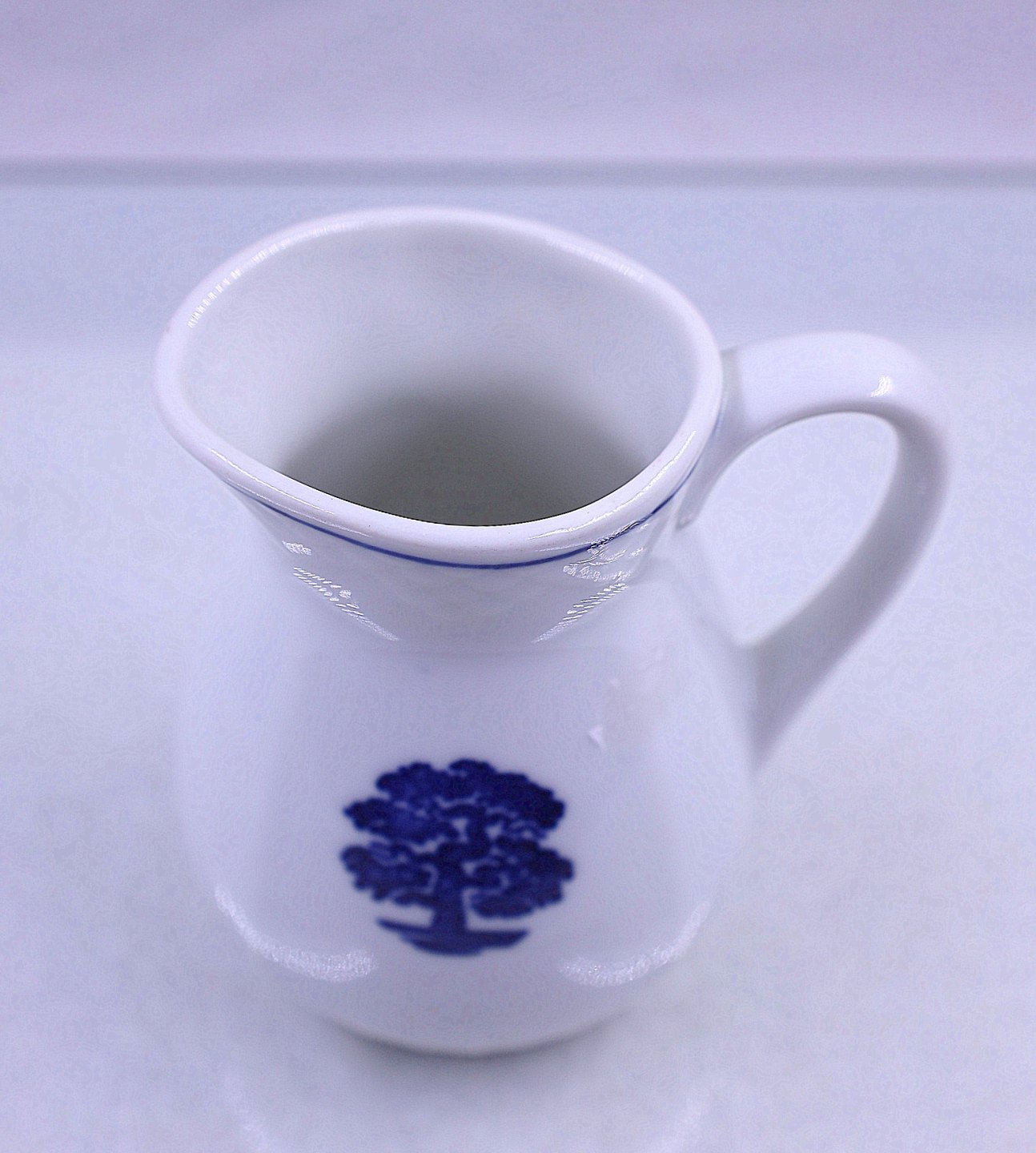 Bing & Grøndahl. Flødekande, nr. 1042. Flødekande af hotelporcelæn, dekoreret med stiliseret, blåt, egetræ.