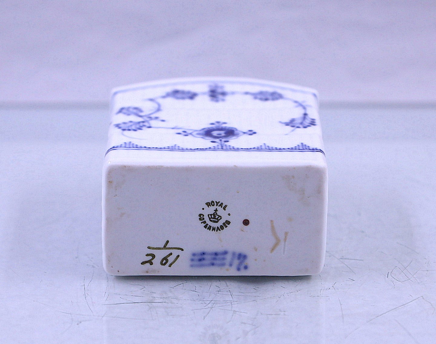 Royal Copenhagen. Musselmalet riflet te dåse, hr. 1/261. Te dåsen er med porcelæns prop, blev også lavet med korkprop og sølv montering.