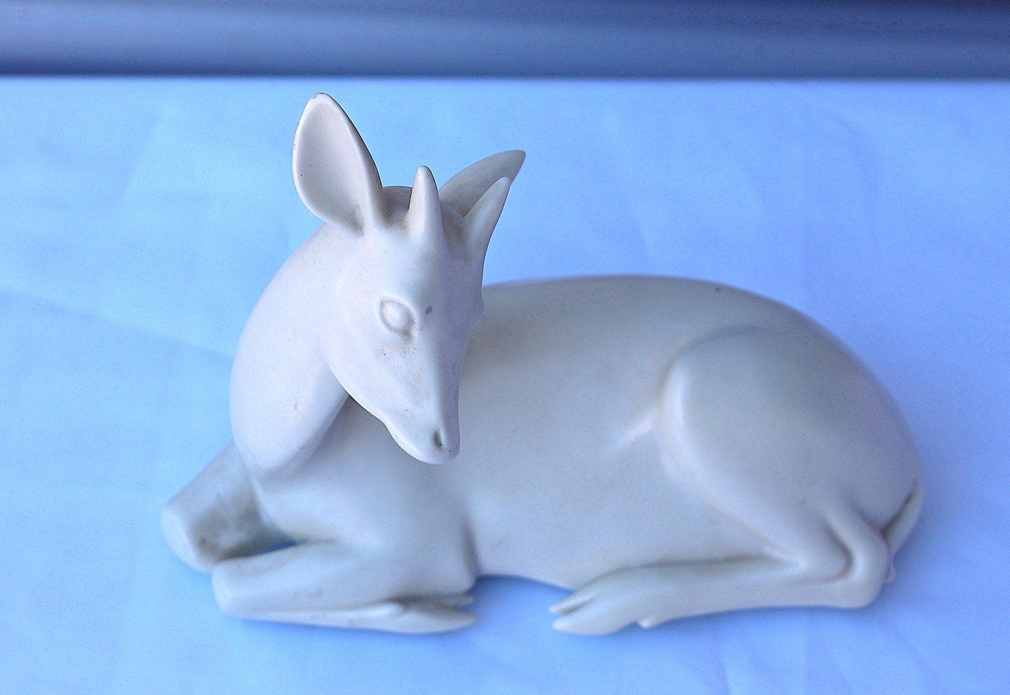 Bing & Grøndahl. Liggende hjort, nr. 2205. Figuren er udført i porcelæn med mat glasur.