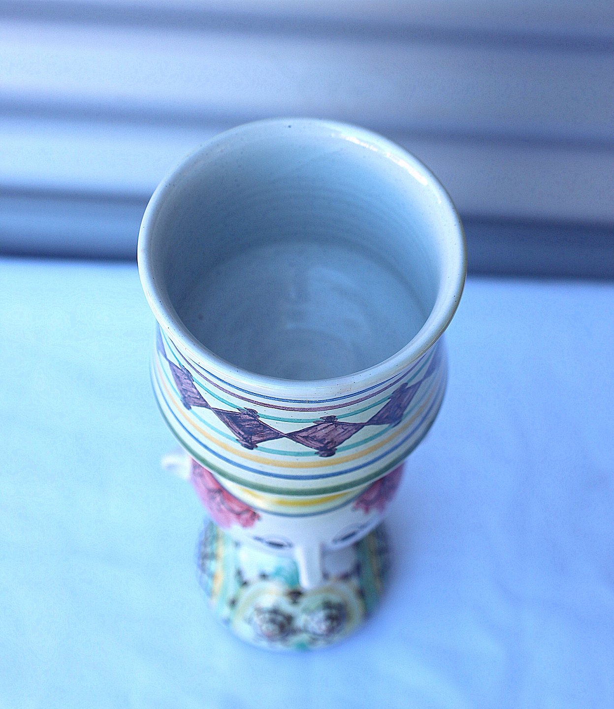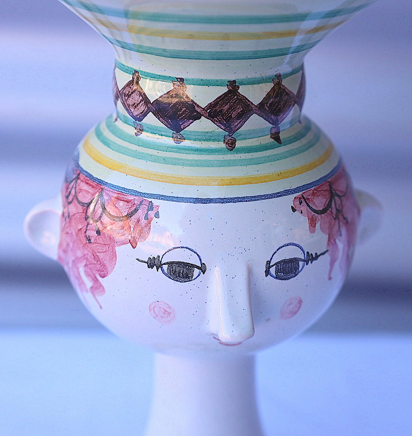 Opsatsen er polykrom bemalet fajance.