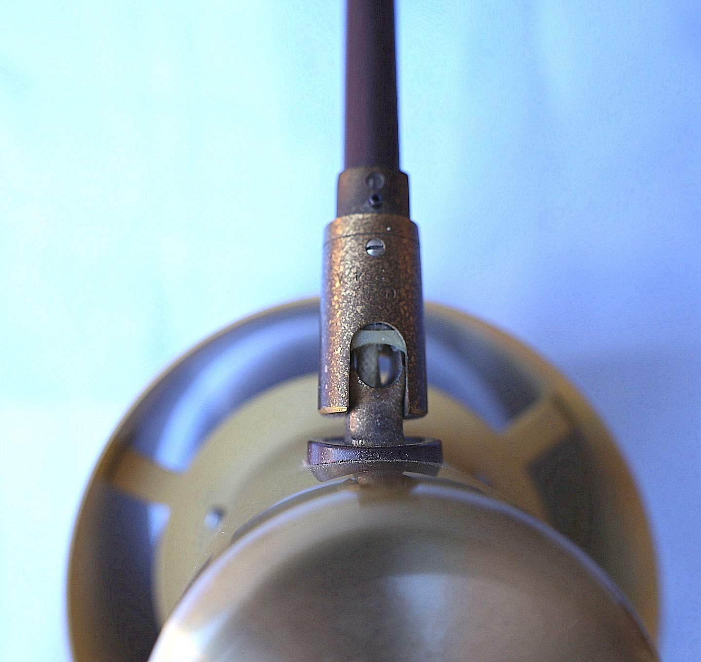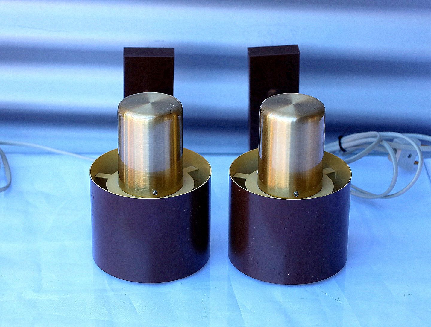 Modellen hedder Alfa og dette par er udført i mat brun lakering og messing. Indvendig gul lakering, der giver et dejligt lys.