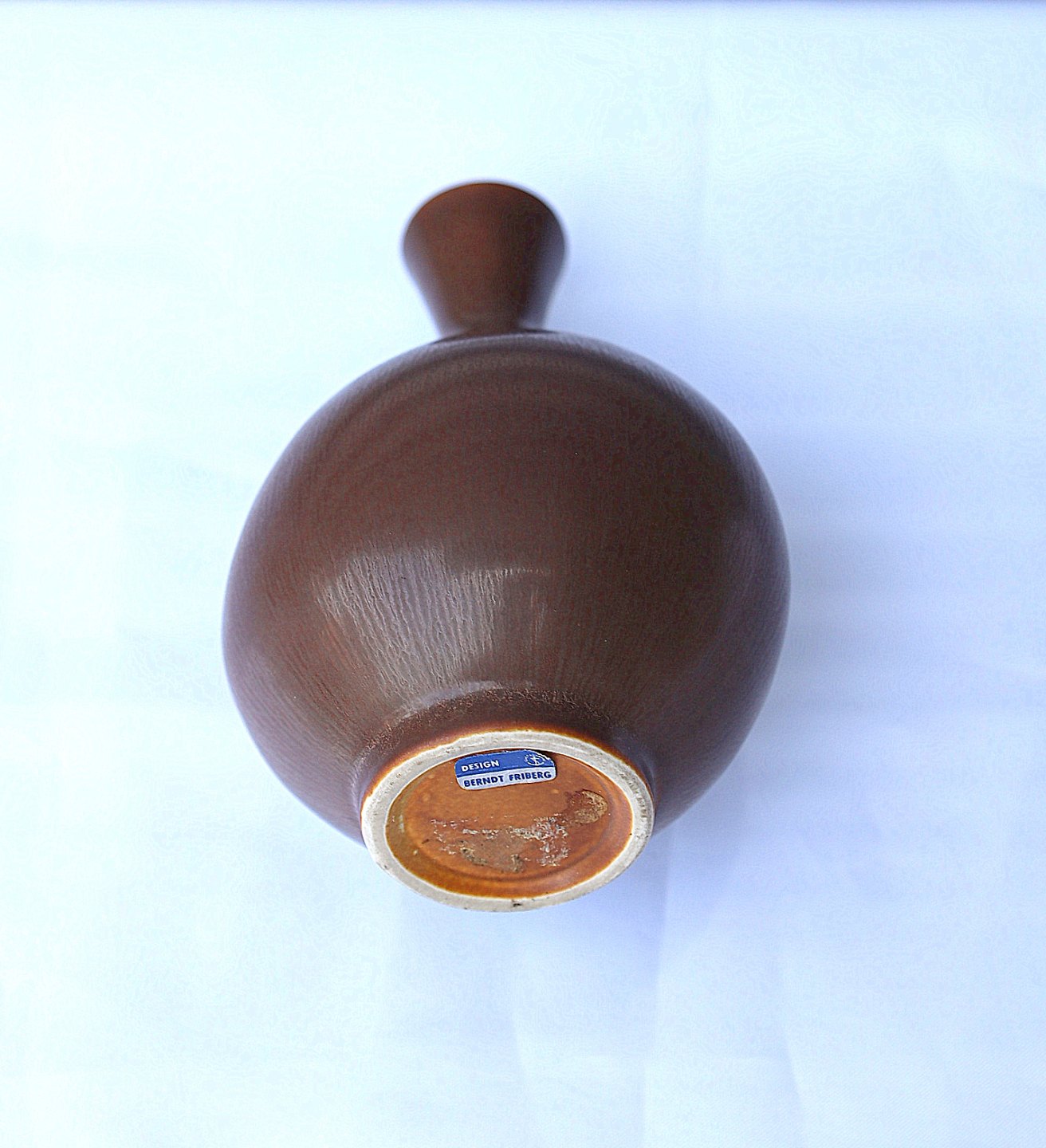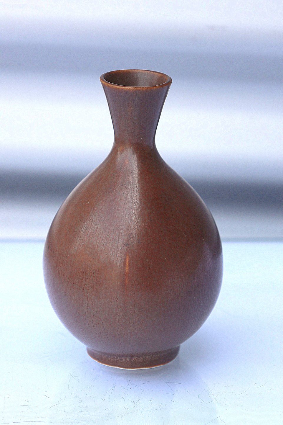 Gustavsberg, Sweden. Berndt Friberg, keramik vase med ensfarvet harepelsglasur. Vase er brun let oval i facon, med høj hals.