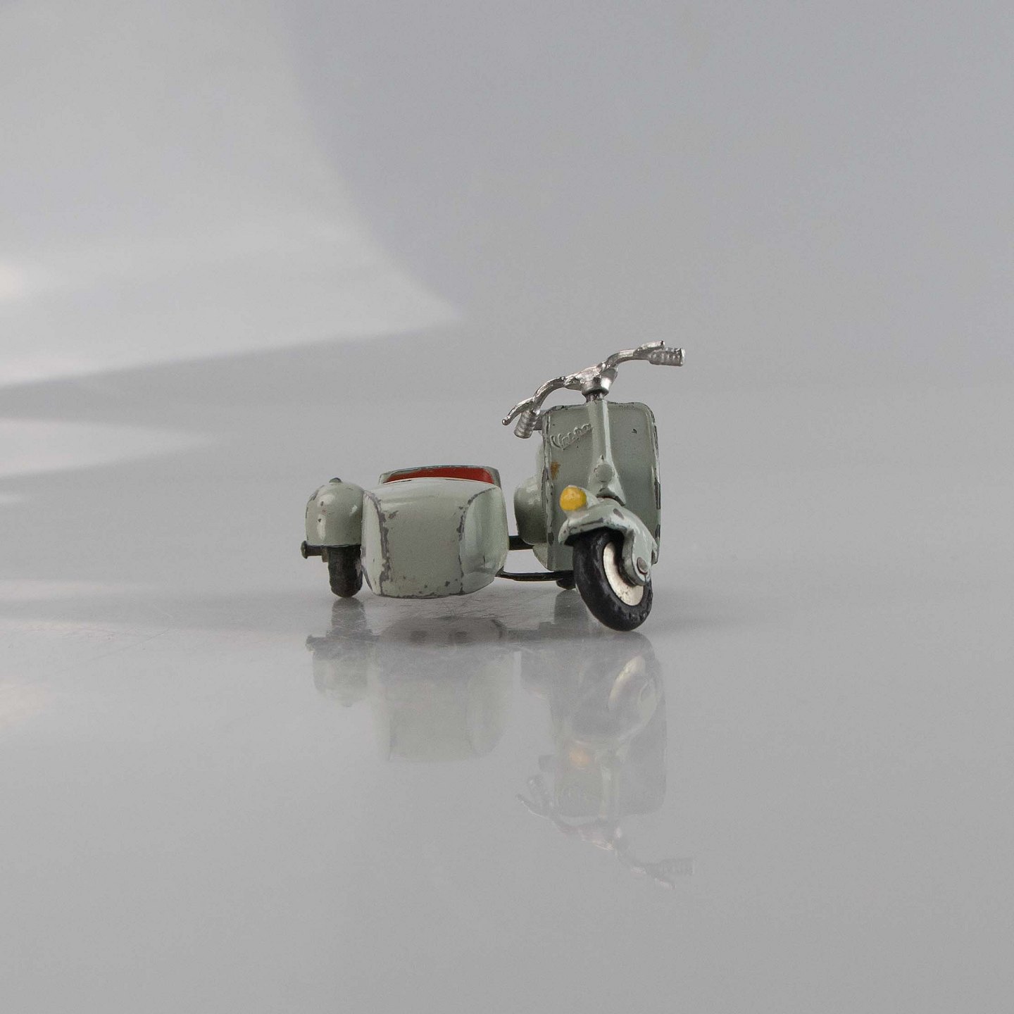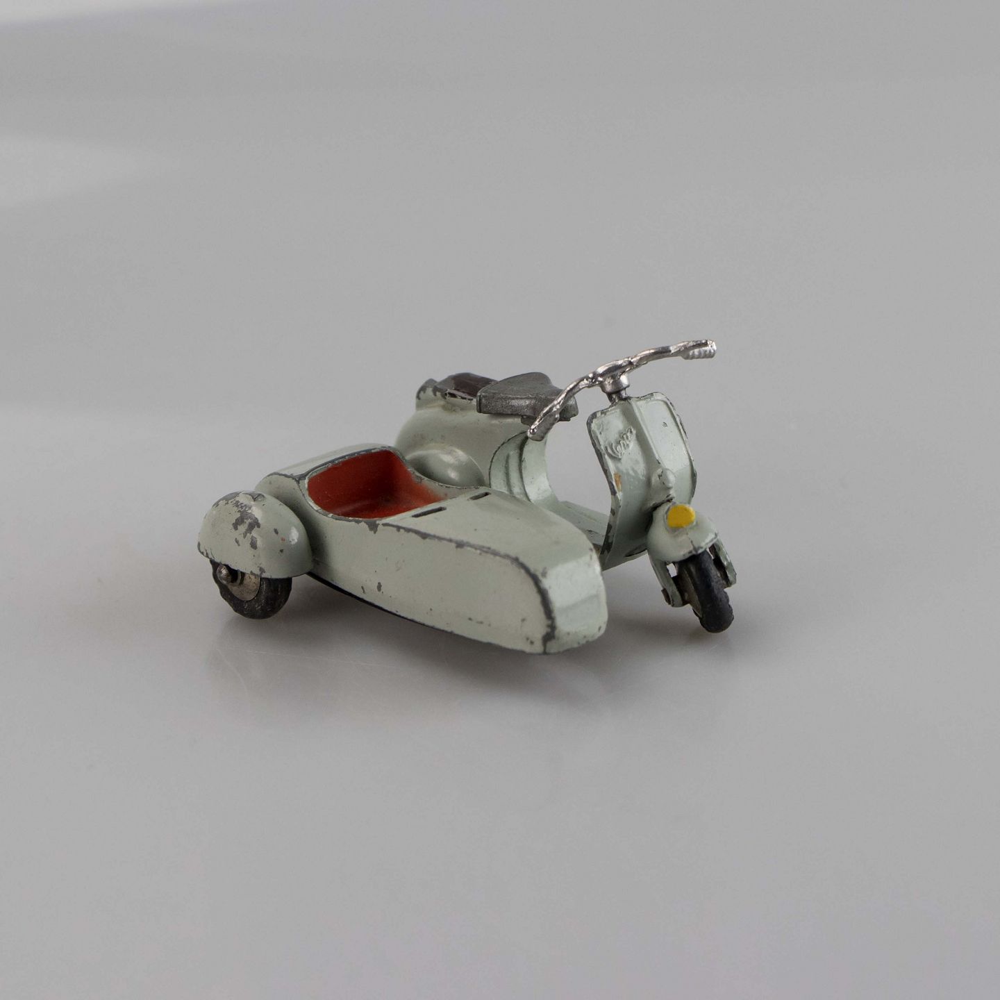 Scooter med sidevogn i metal med motiv af en Vespa.