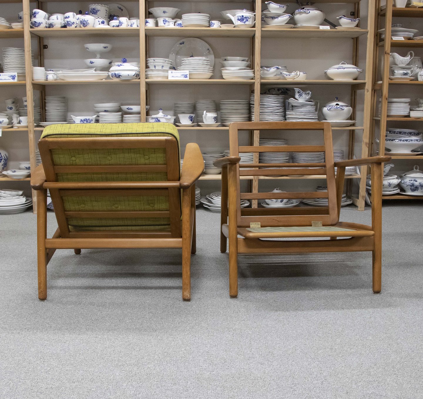 Et sæt lænestole model GE 233 i lakeret bøgetræ