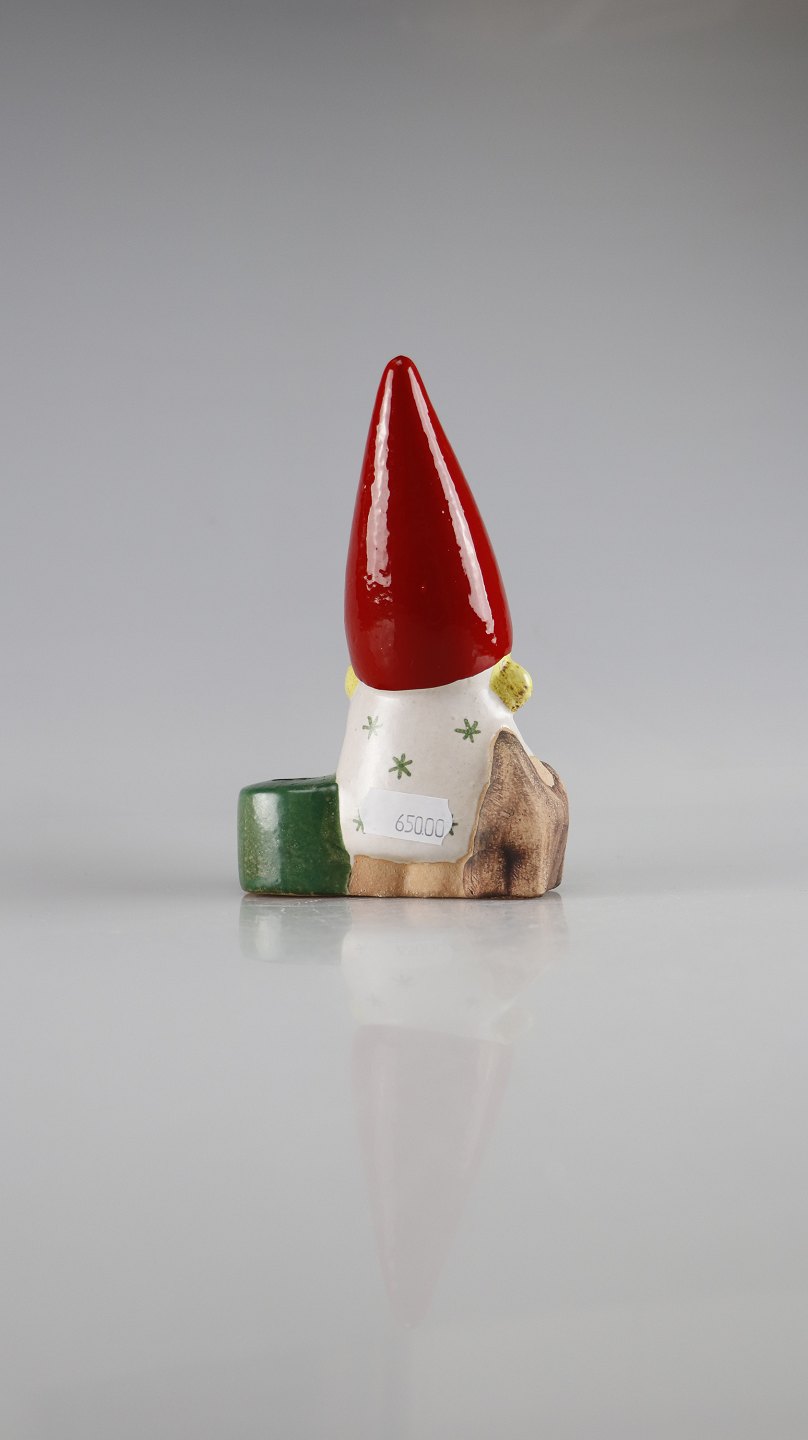 Adventsstage i keramik med motiv af nisse beregnet til et kertelys