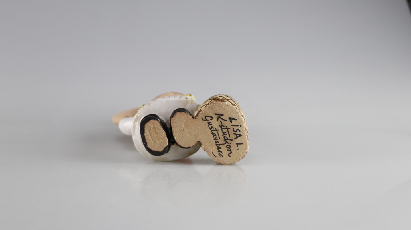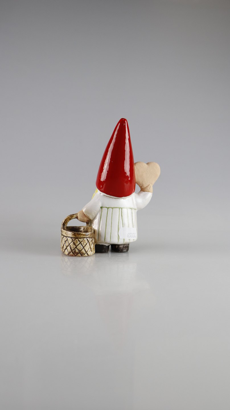 Stentøjsfigur af nissepige med hjerte og kurv.