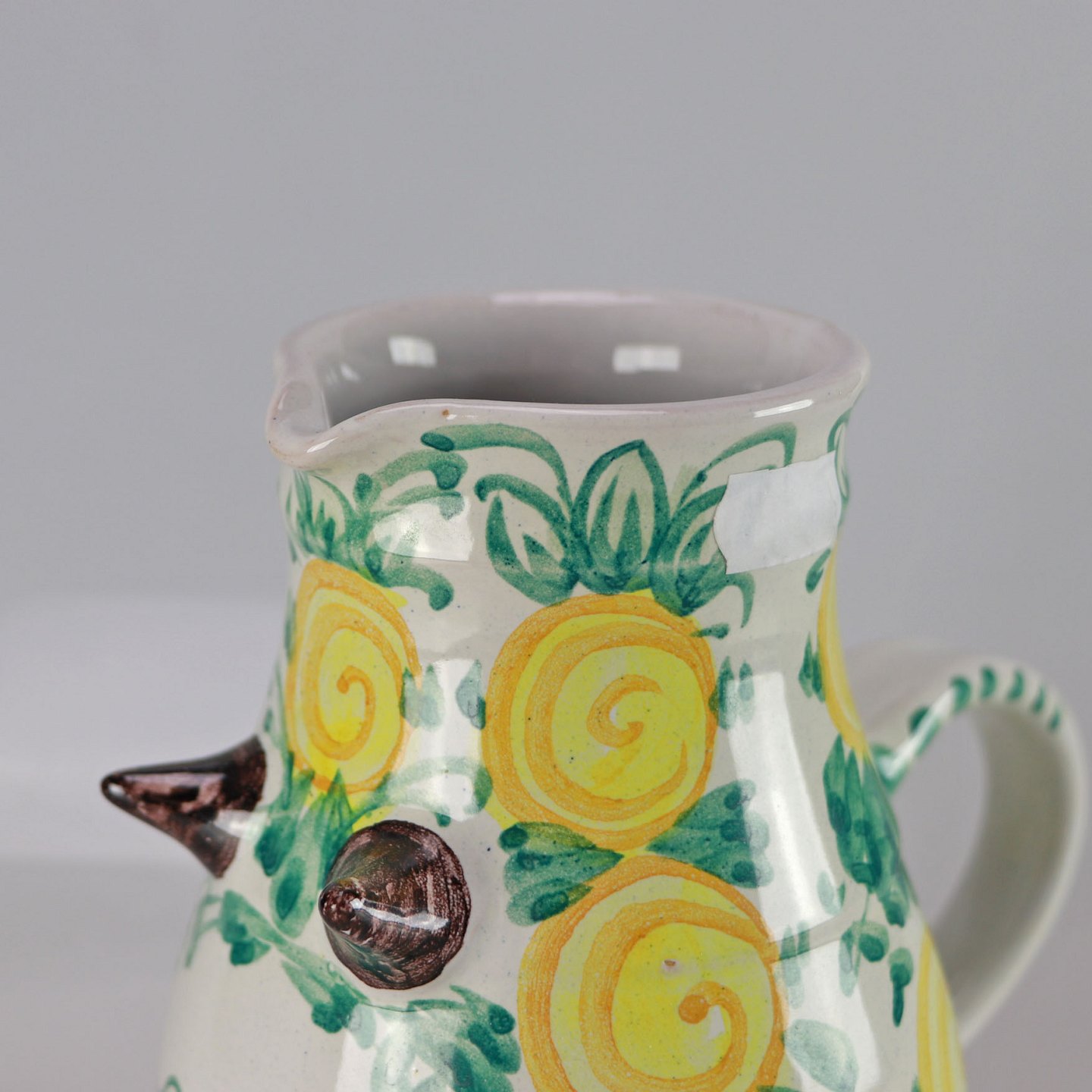 Kande fra Bjørn Wiinblad med kvindeansigt og blomster som hår i grønne og gule farver.