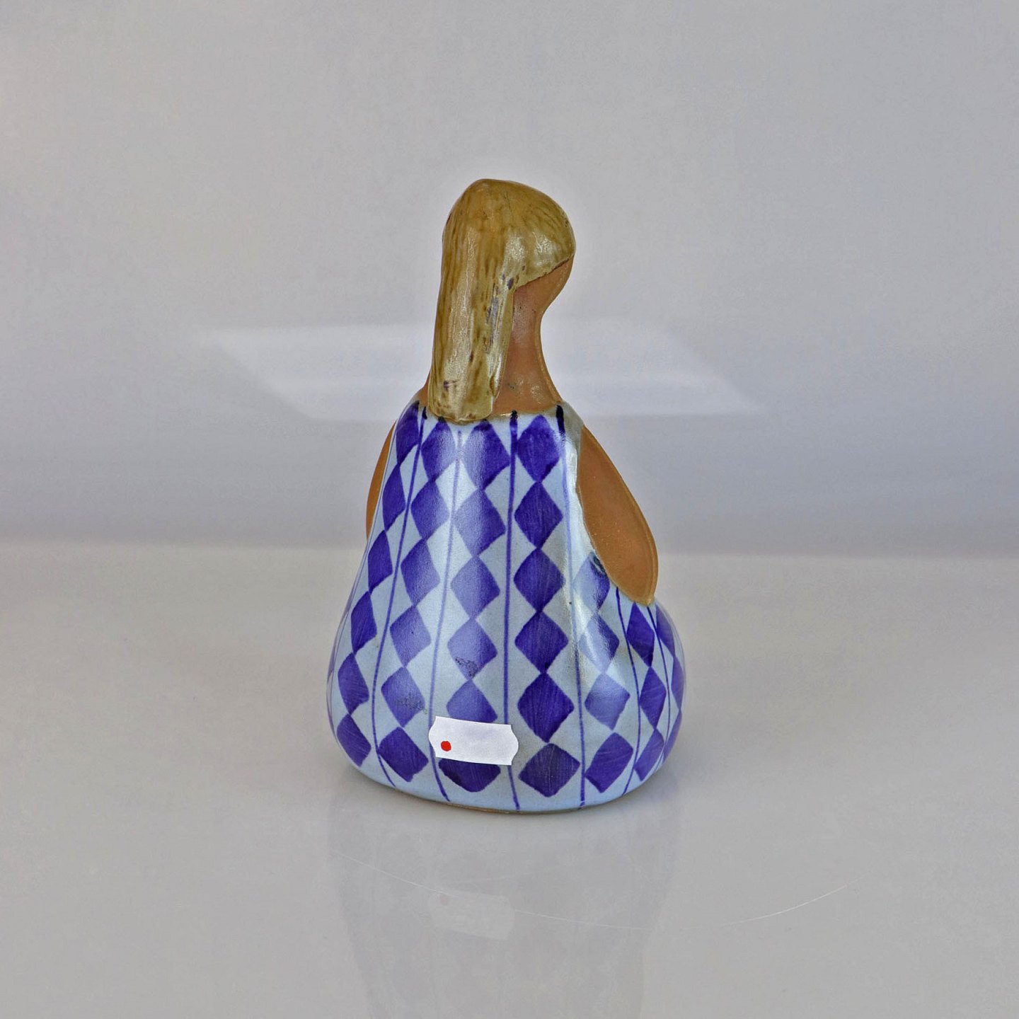 Siddende kvindefigur Amalia af delvist glaseret stentøj