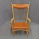 Lakeret eg. Sæde og nakkepude betrukket med nypolstret cognacfarvet læder.