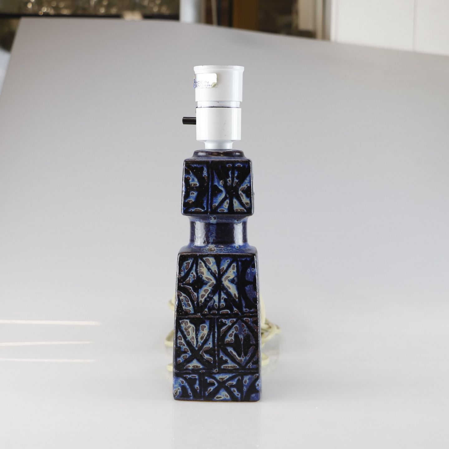 Lampefod i porcelæn med abstrakt blåt mønster