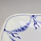 Serveringsfad i hvidt porcelæn med skelform og motiv af guirlander med blå blomster