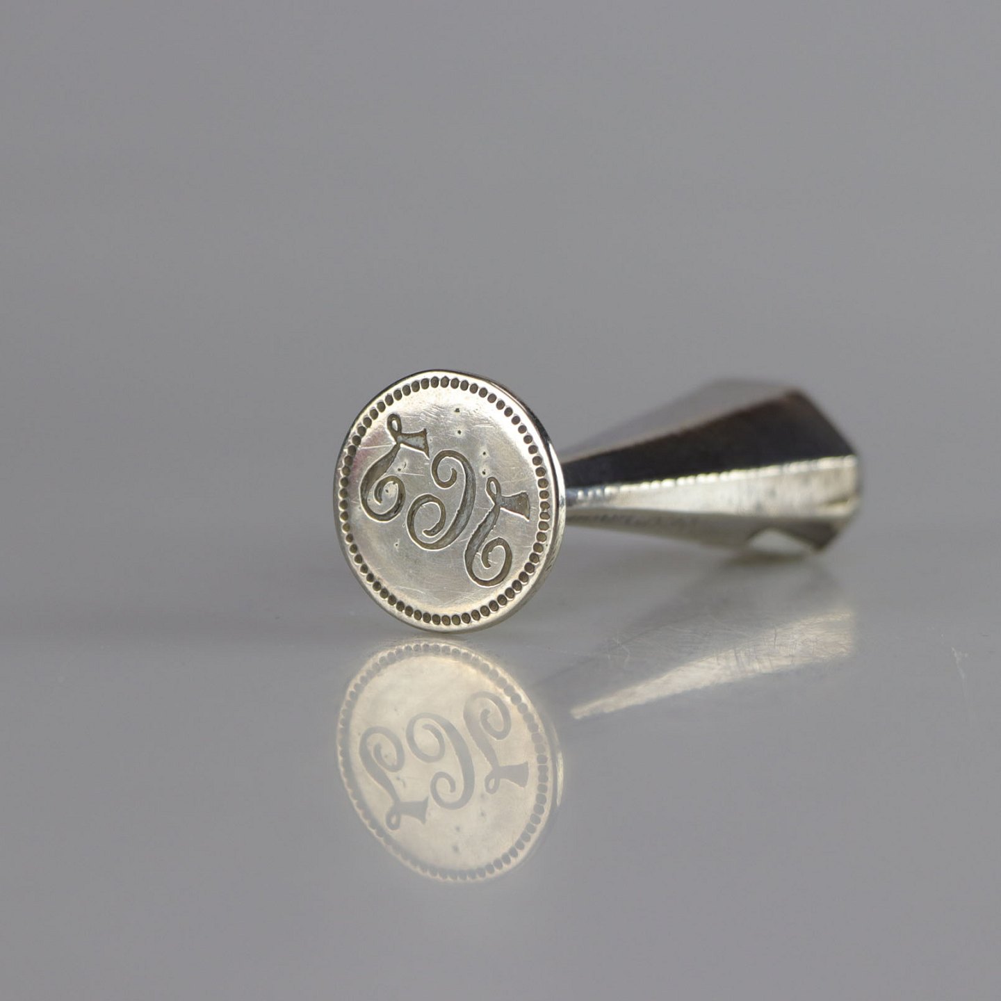 Rund brevstempel i sølv med monogram