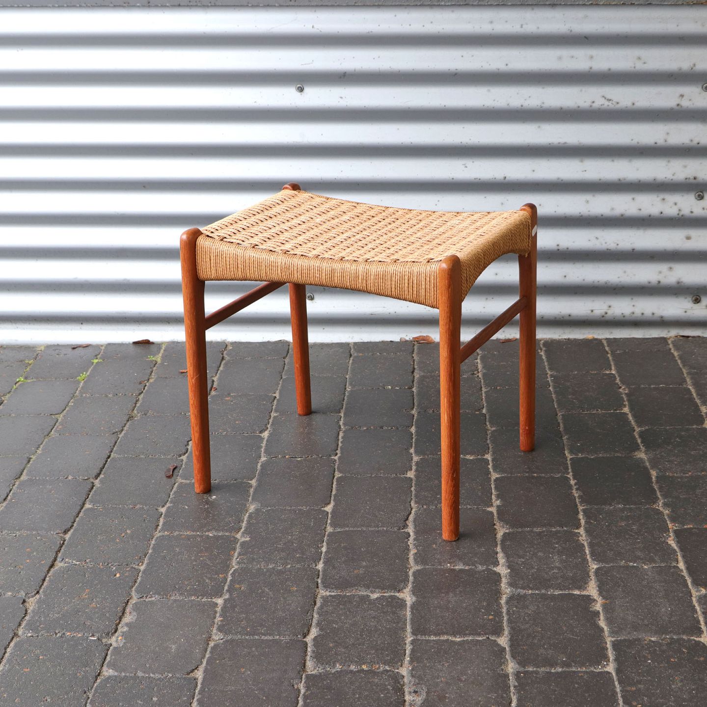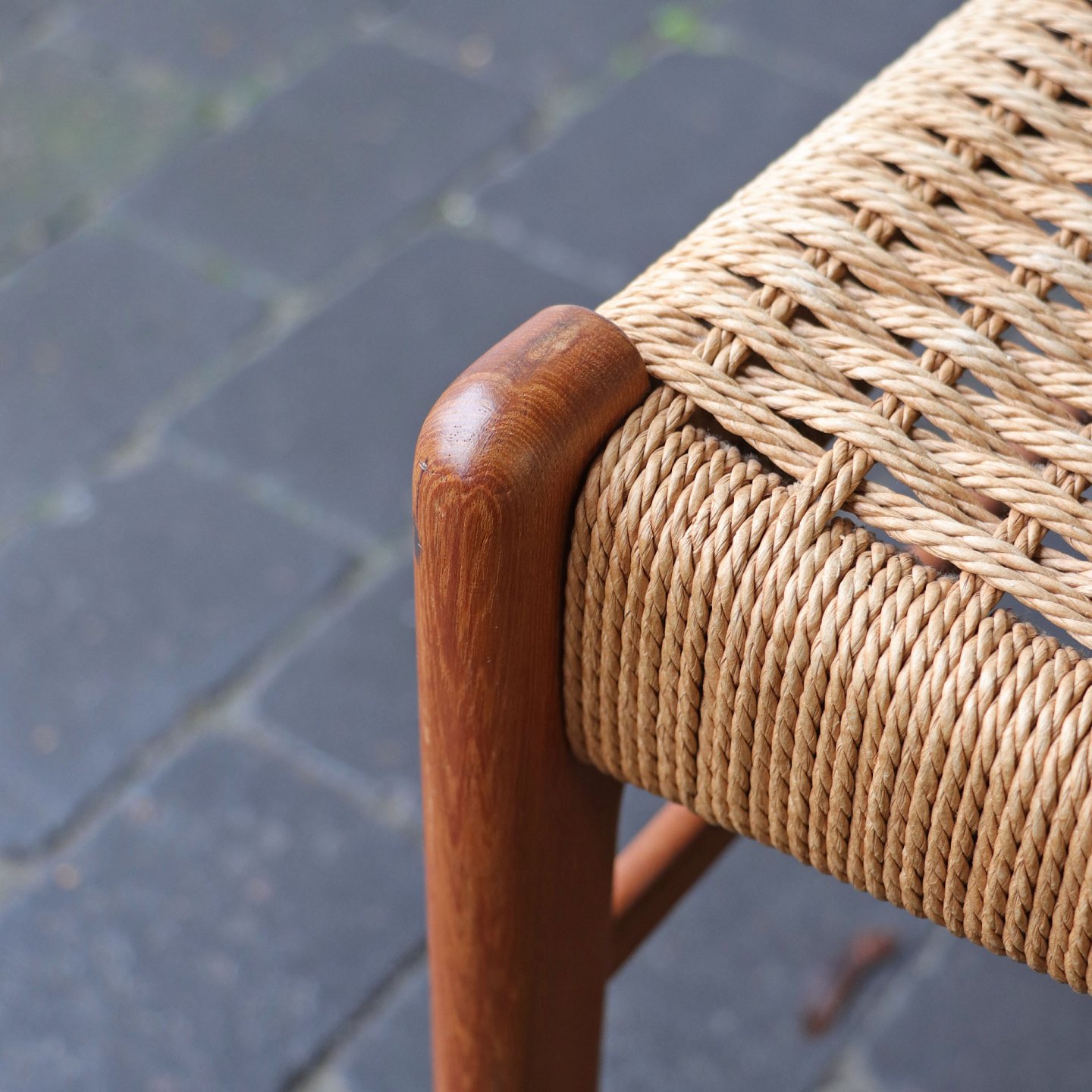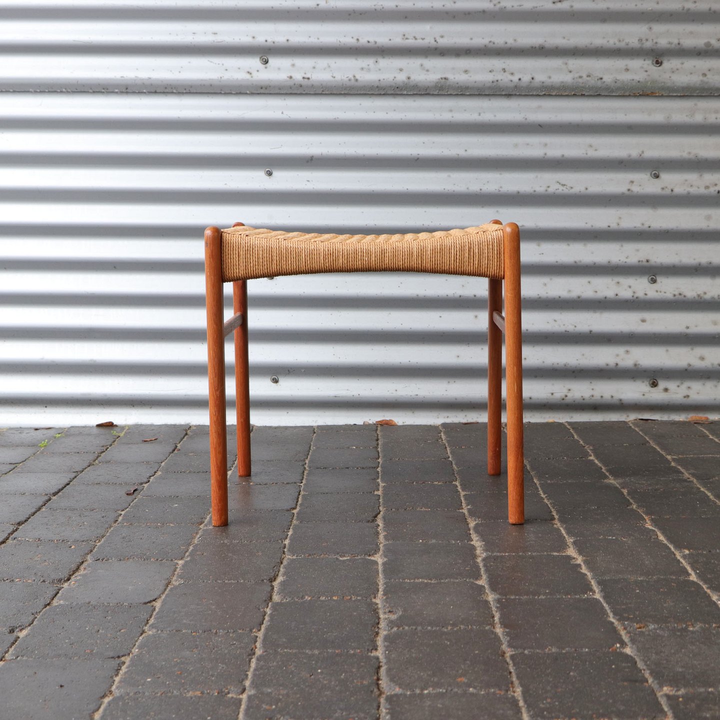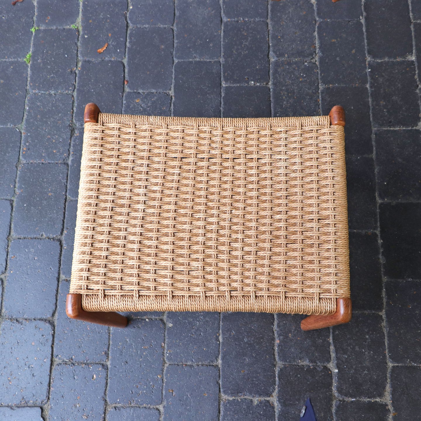 Skammel med papirgarnsflet og stel i eg