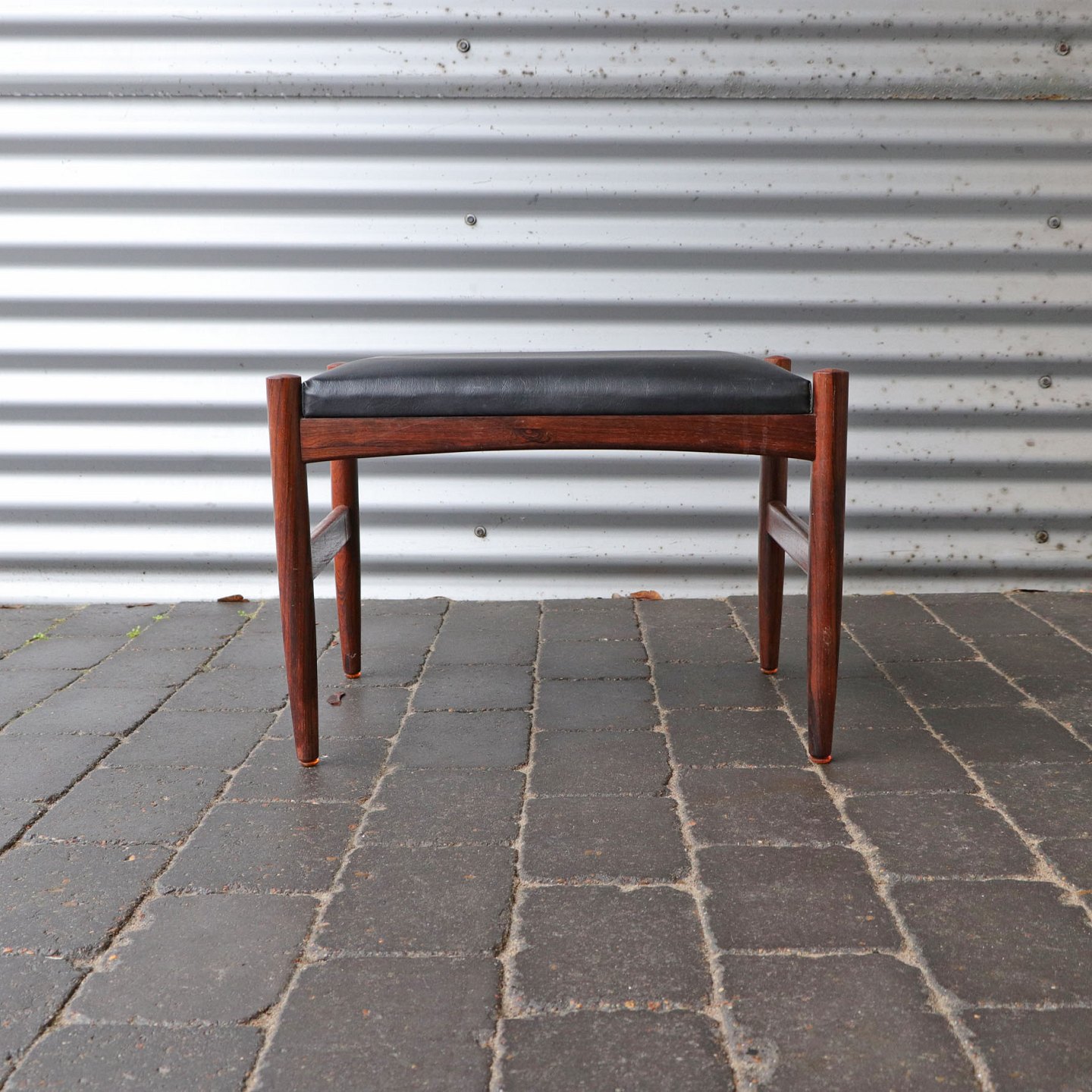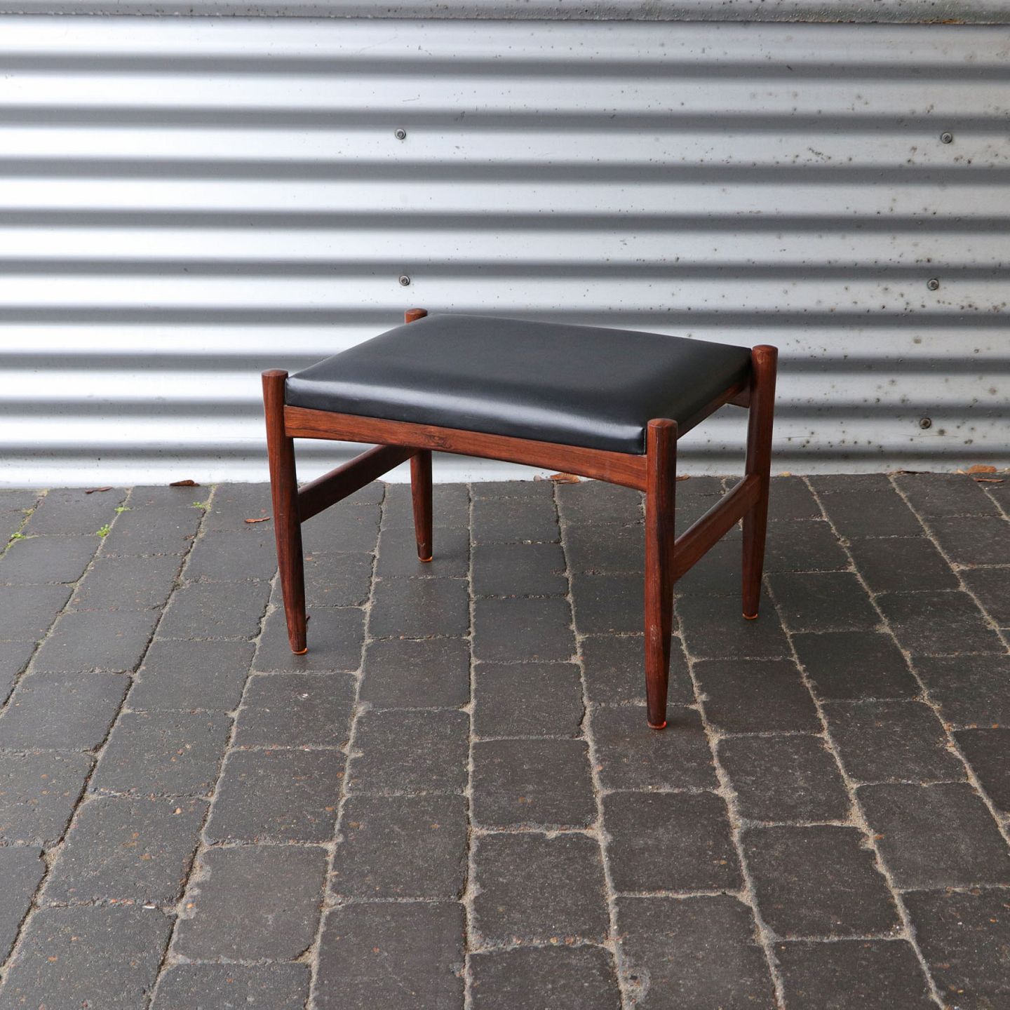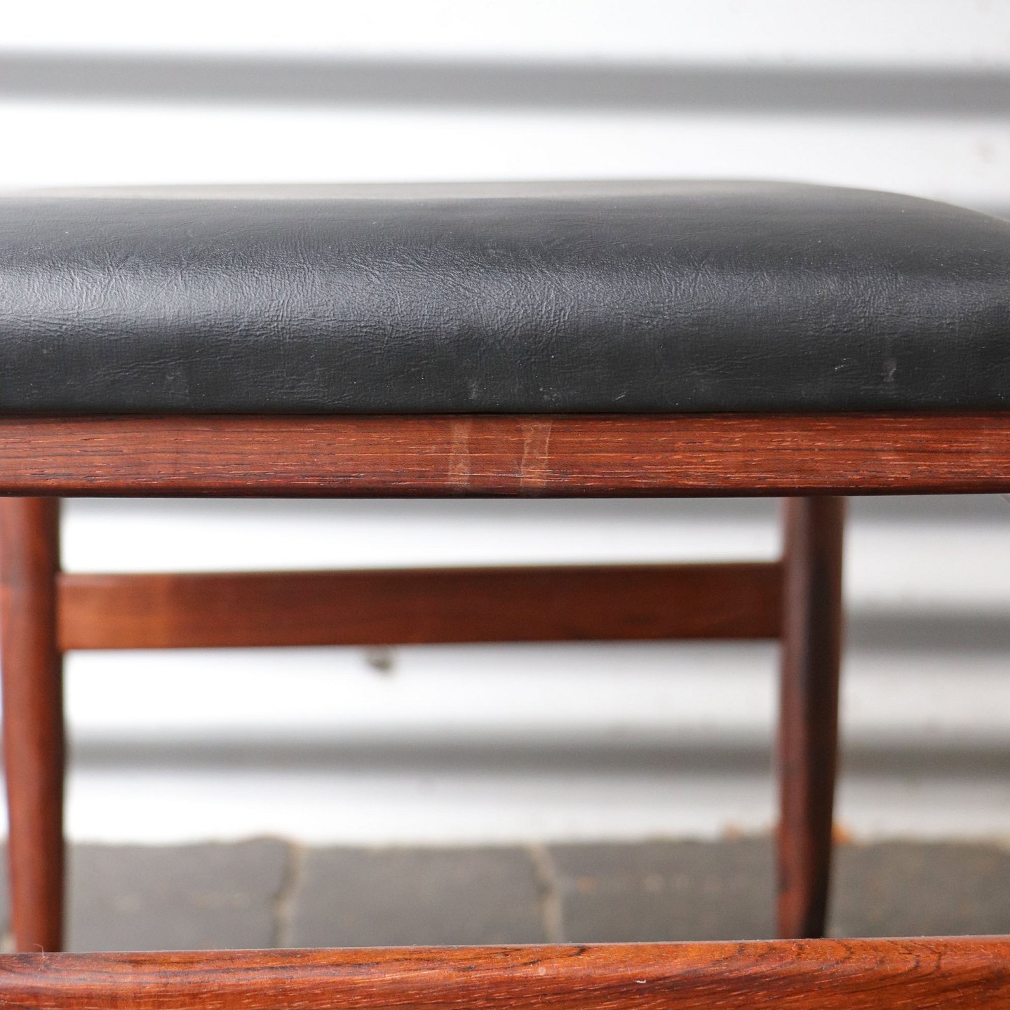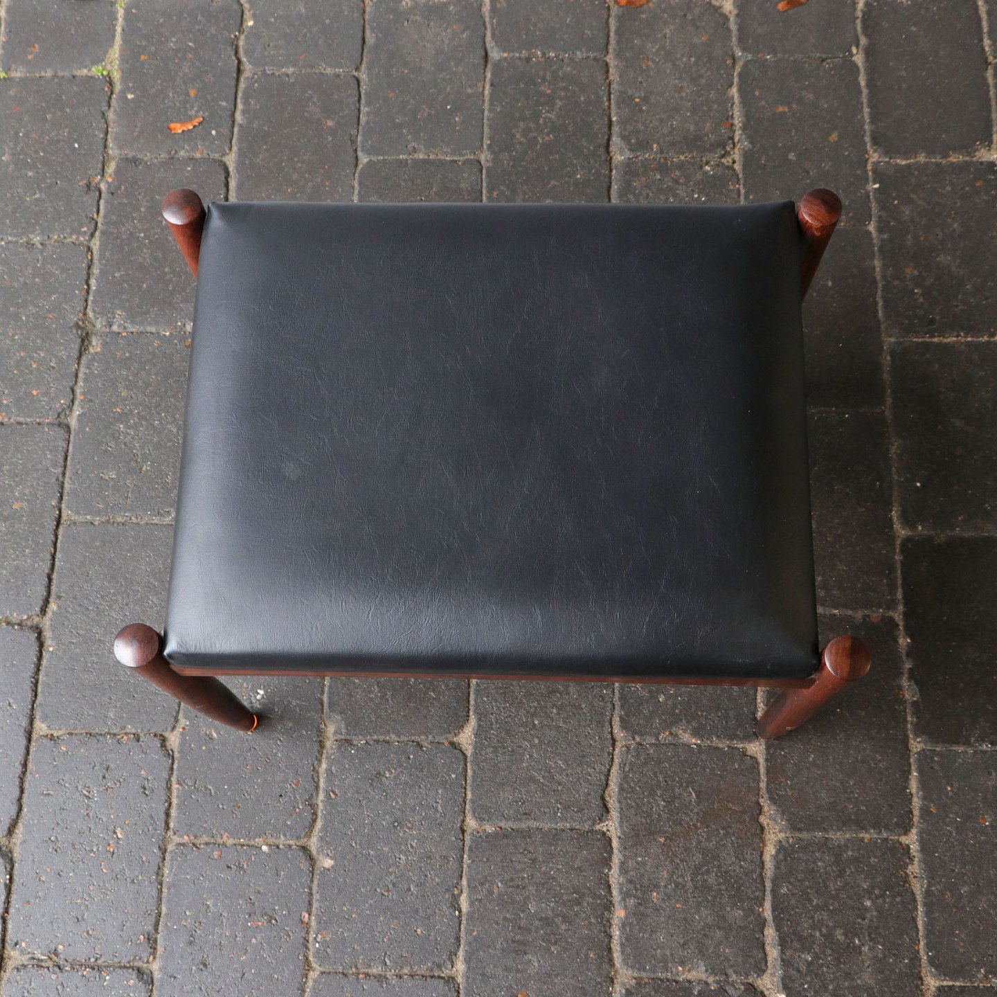 Skammel eller taburet i teak med imiteret læder