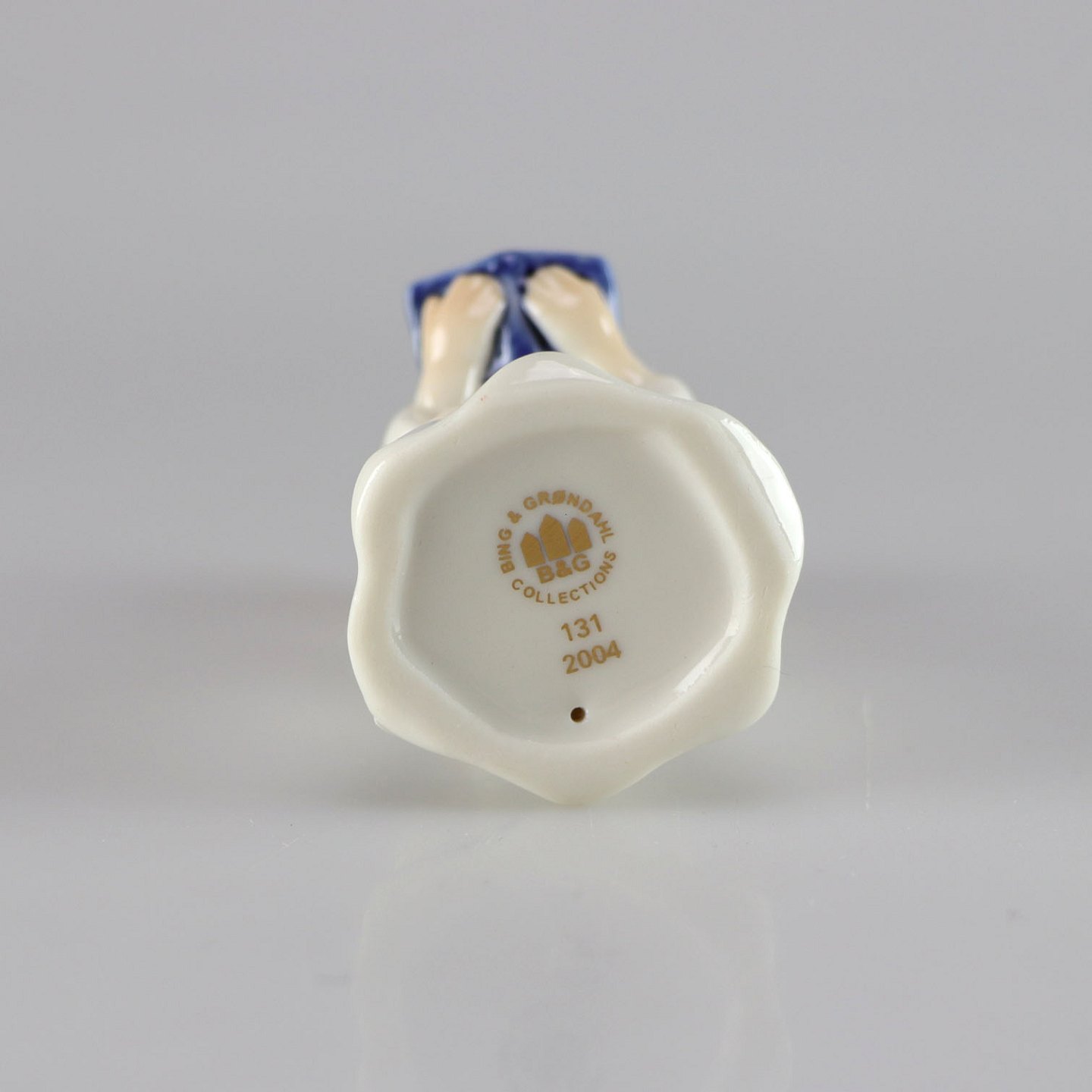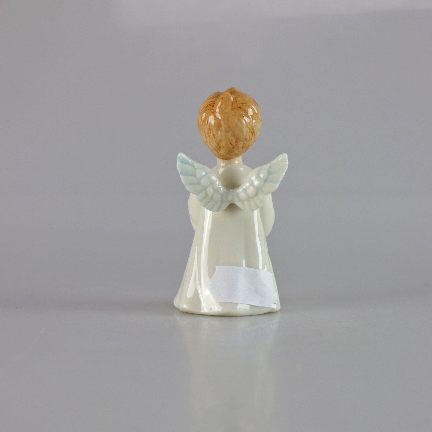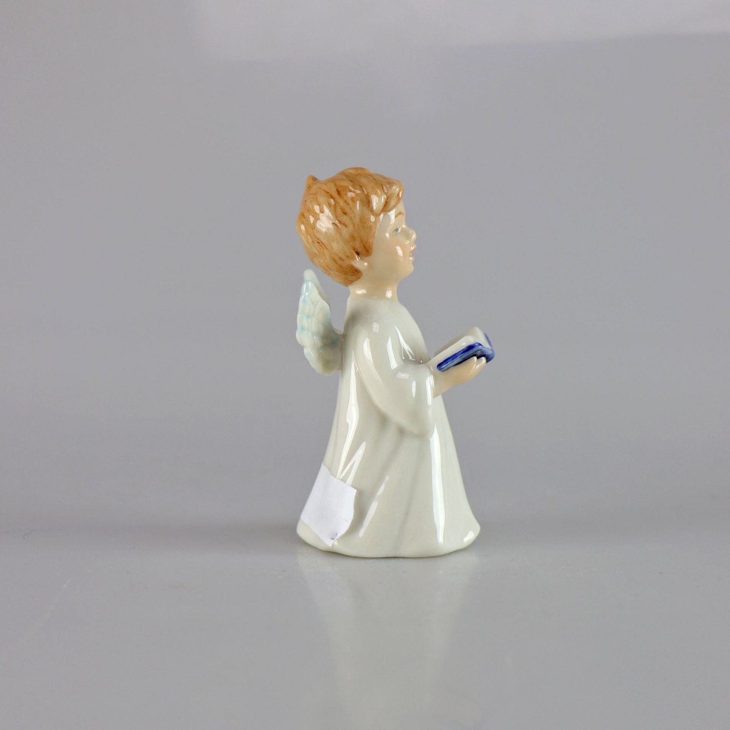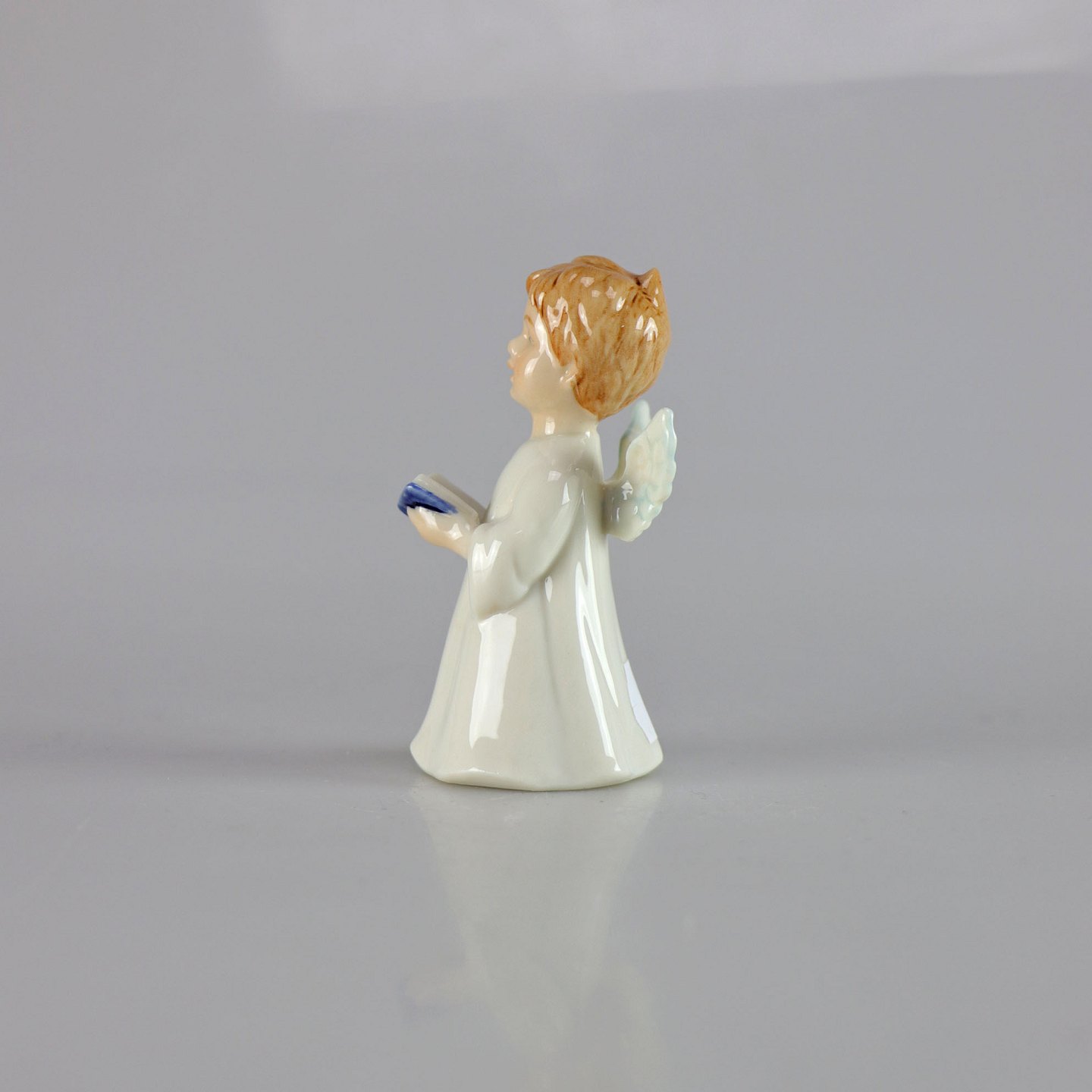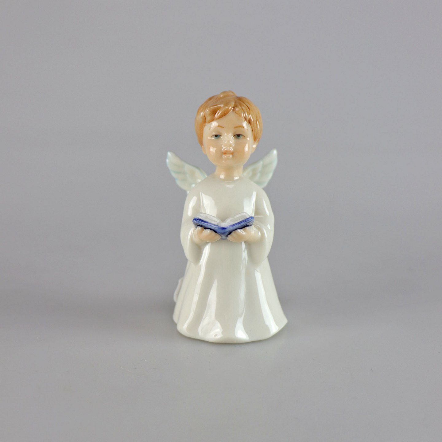 Miniature englefigur i porcelæn år 2004 af dreng med salmebog nr. 131