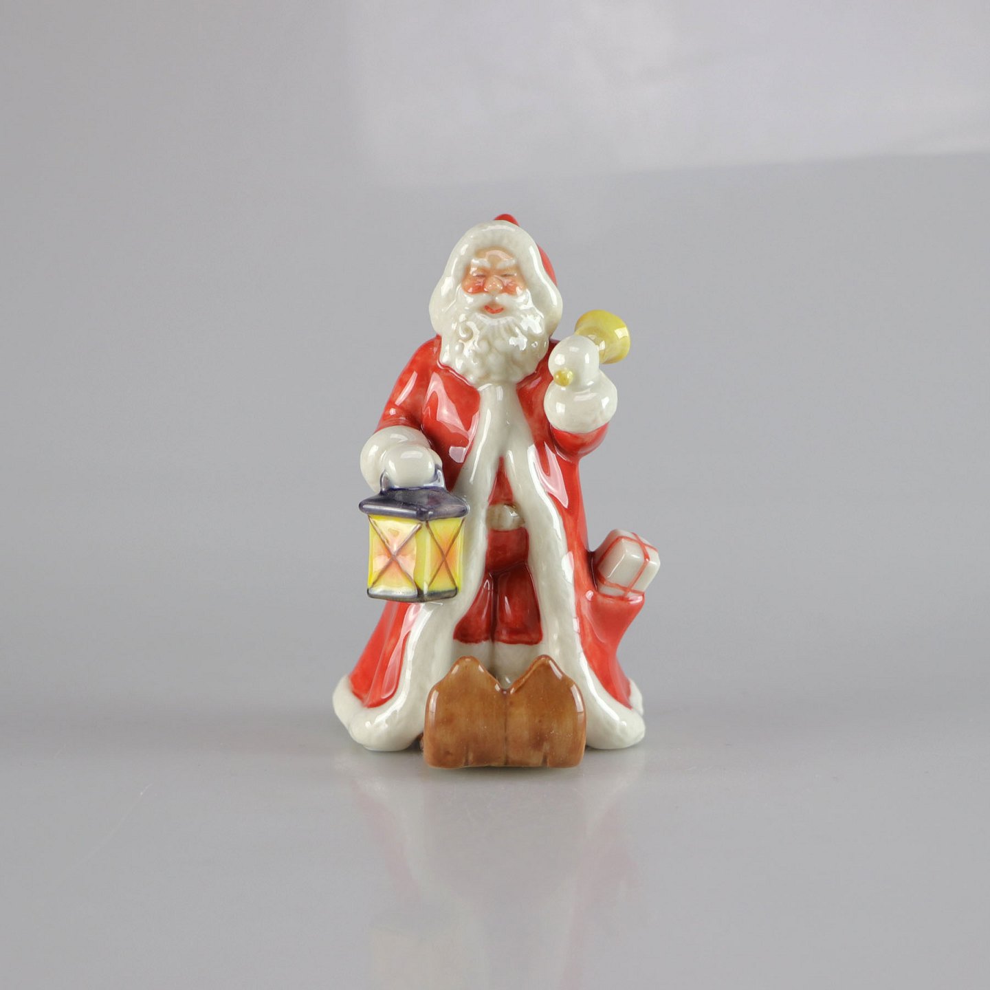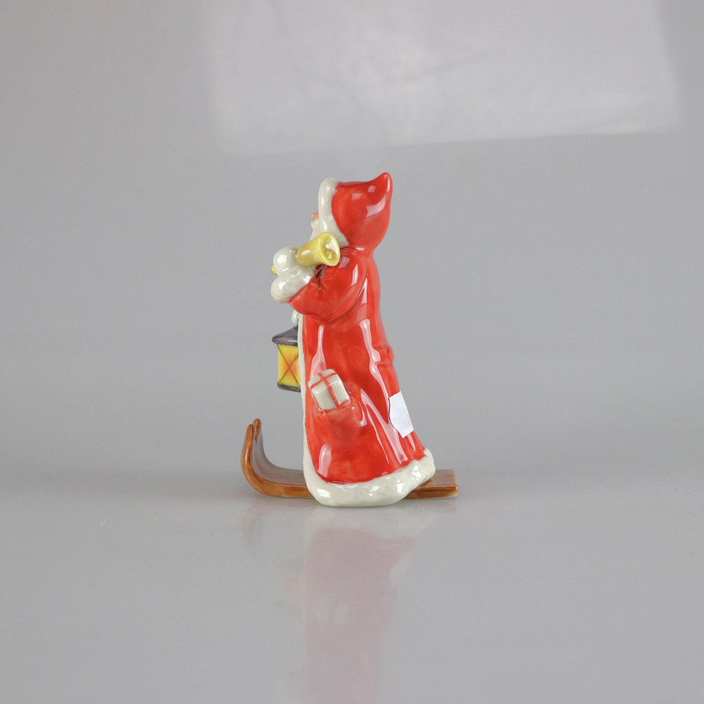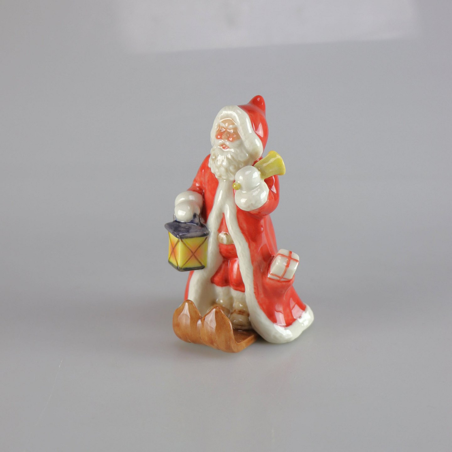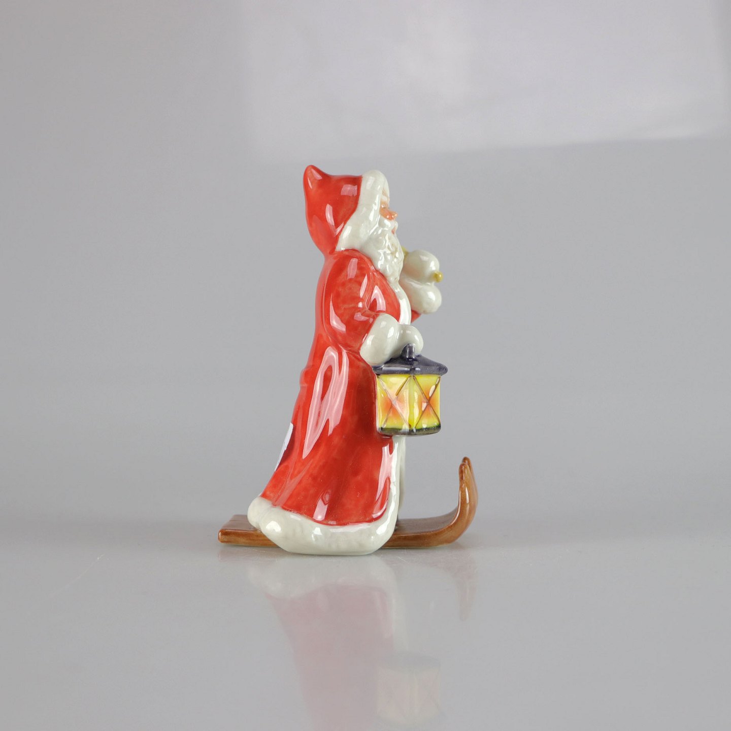 Julemand på ski. Kongelig porcelænsfigur med motiv af julemanden på ski og med lygte og klokke. Orginal æske medfølger.