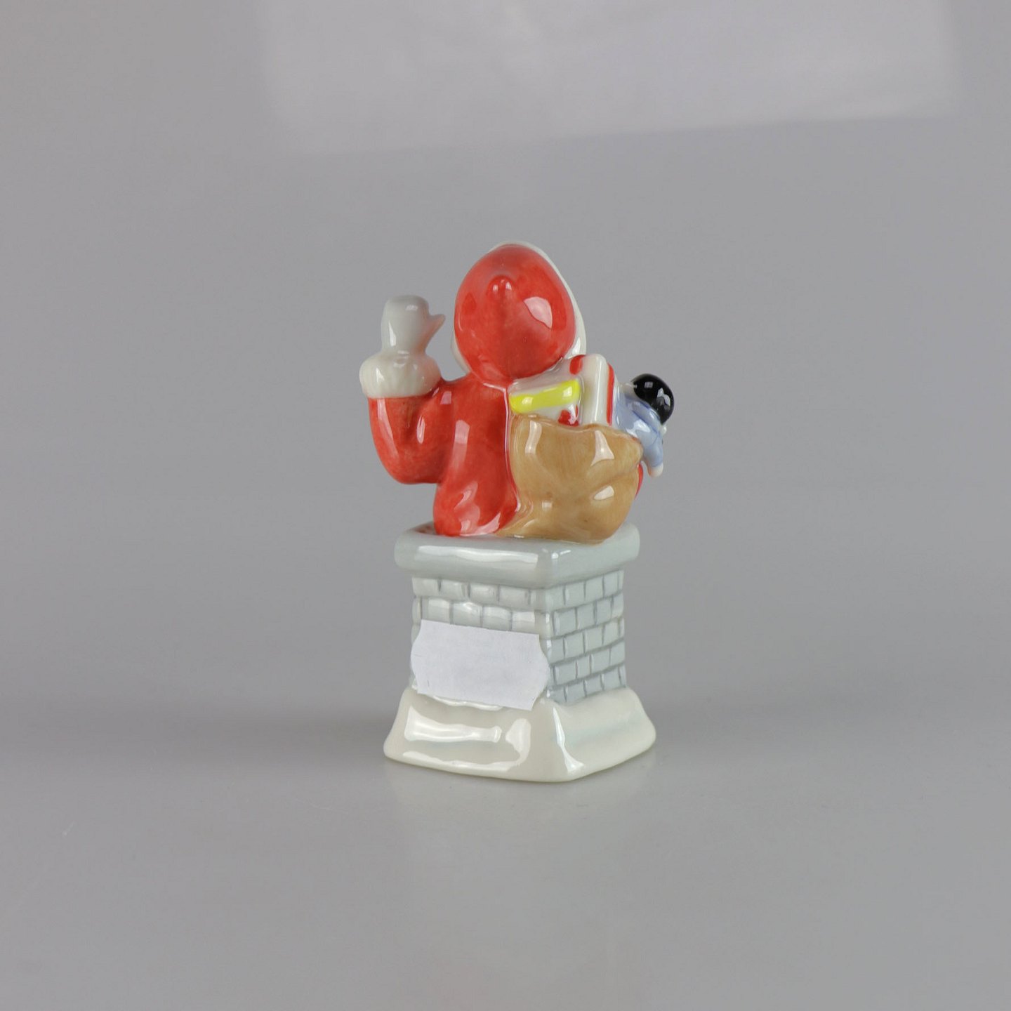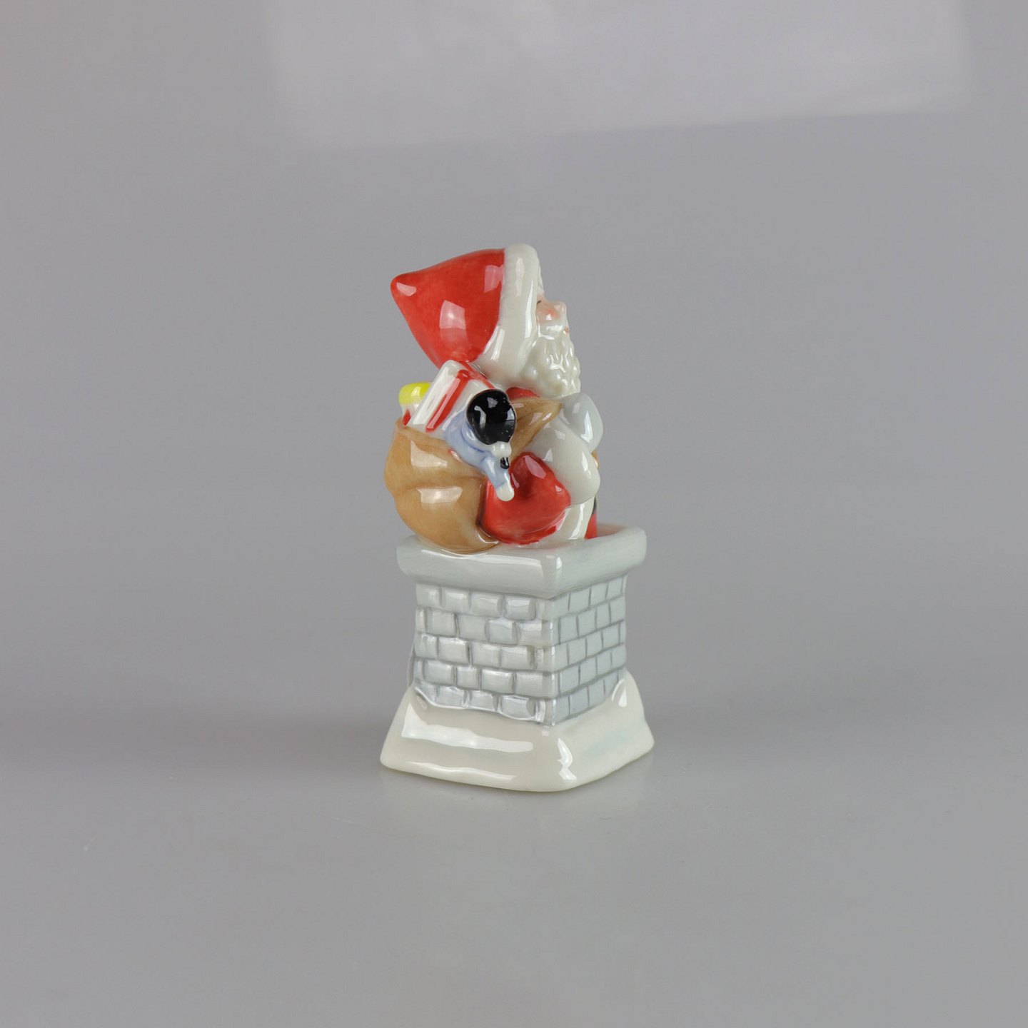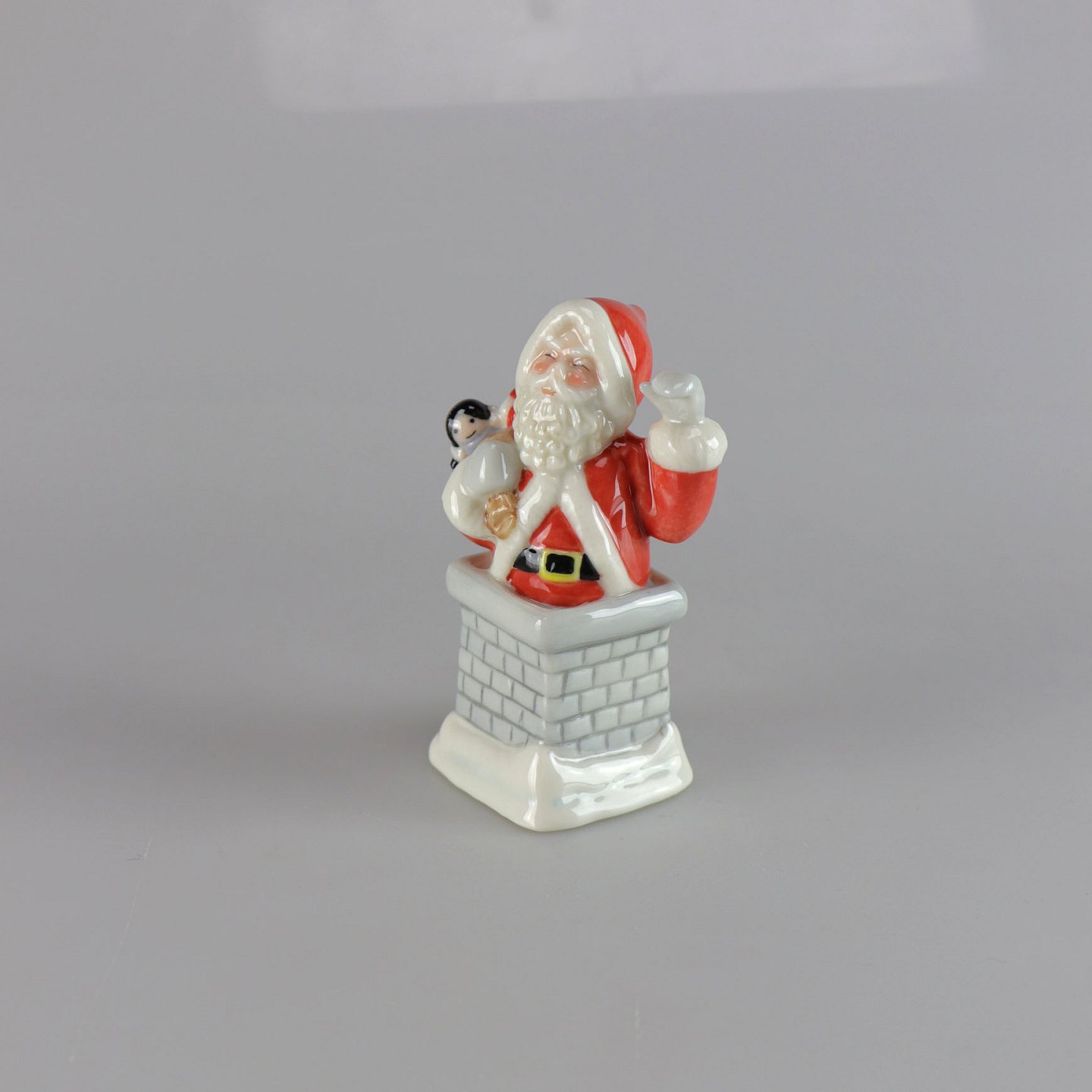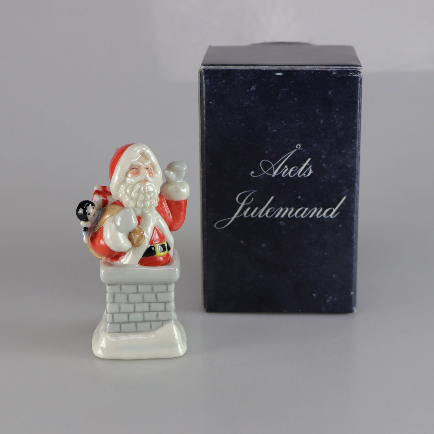 Julemanden i skorsten. Kongelig porcelænsfigur med motiv af julemanden halvt nede i en skorsten. Orginal æske medfølger.