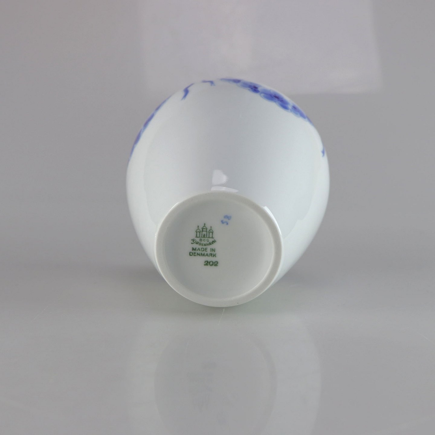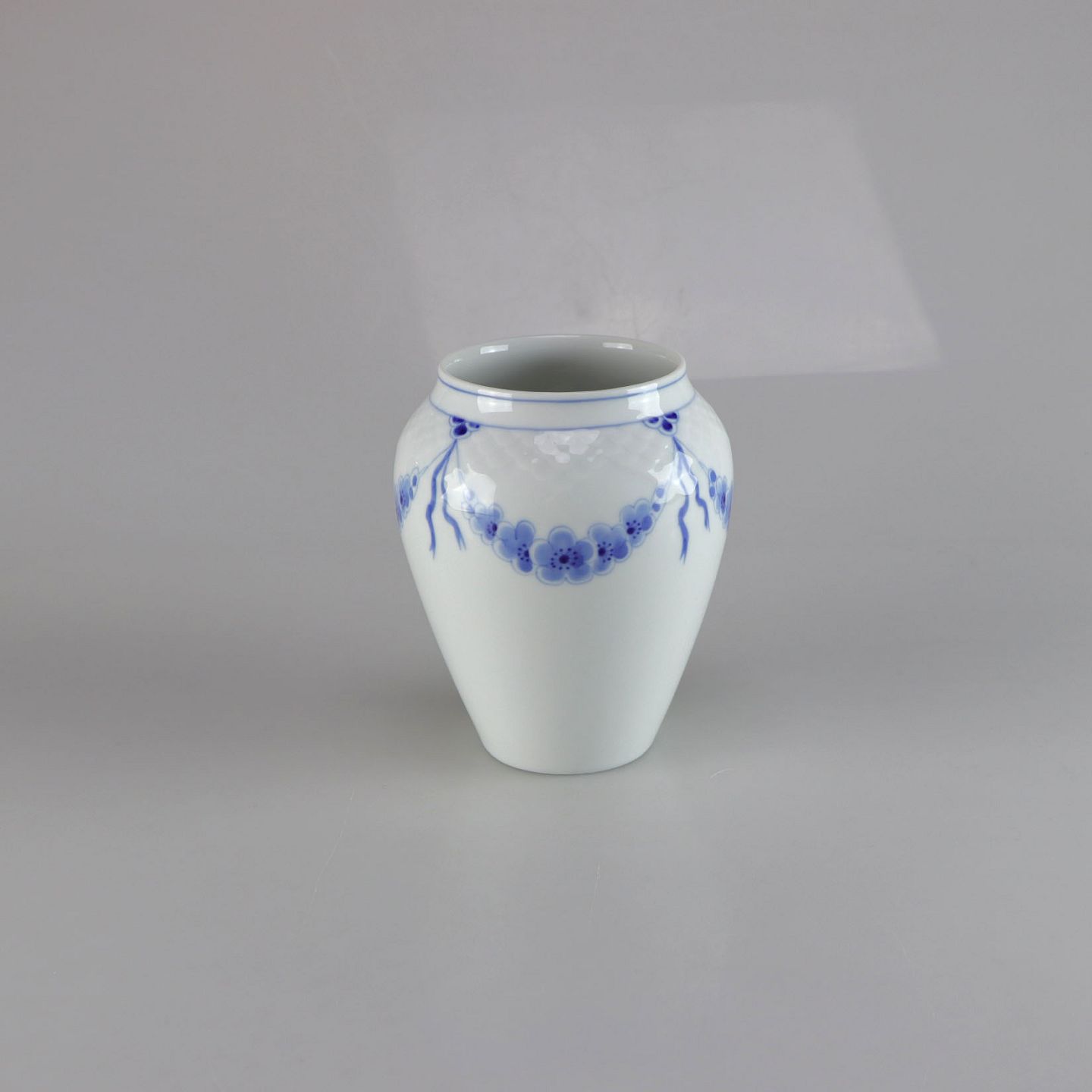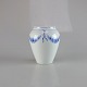 Vase i hvidt porcelæn med skelform og motiv af guirlander med blå blomster