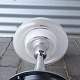 Modellen er designet i 1977 med skærm af opalhvidt og klart glas på fod af krombelagt stål
