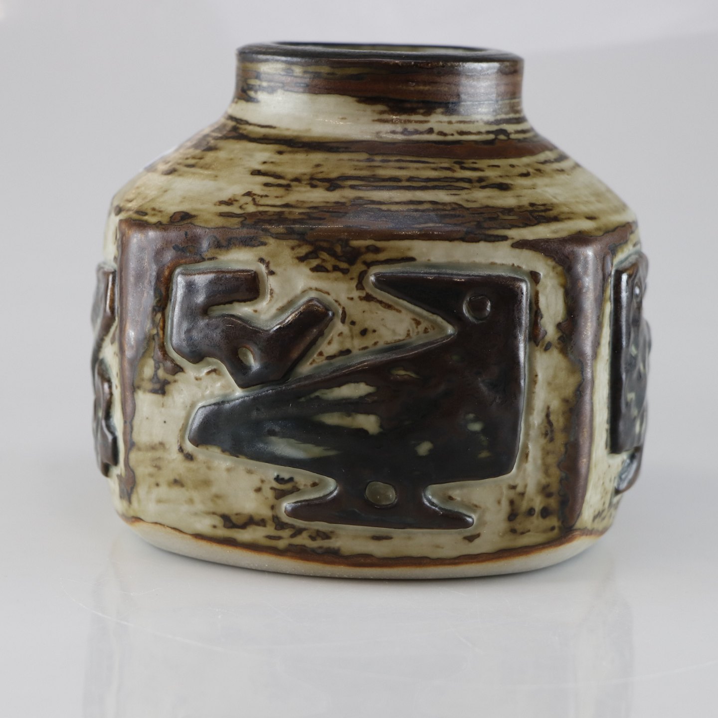 Keramikvase no 21925 med motiv af fugle.