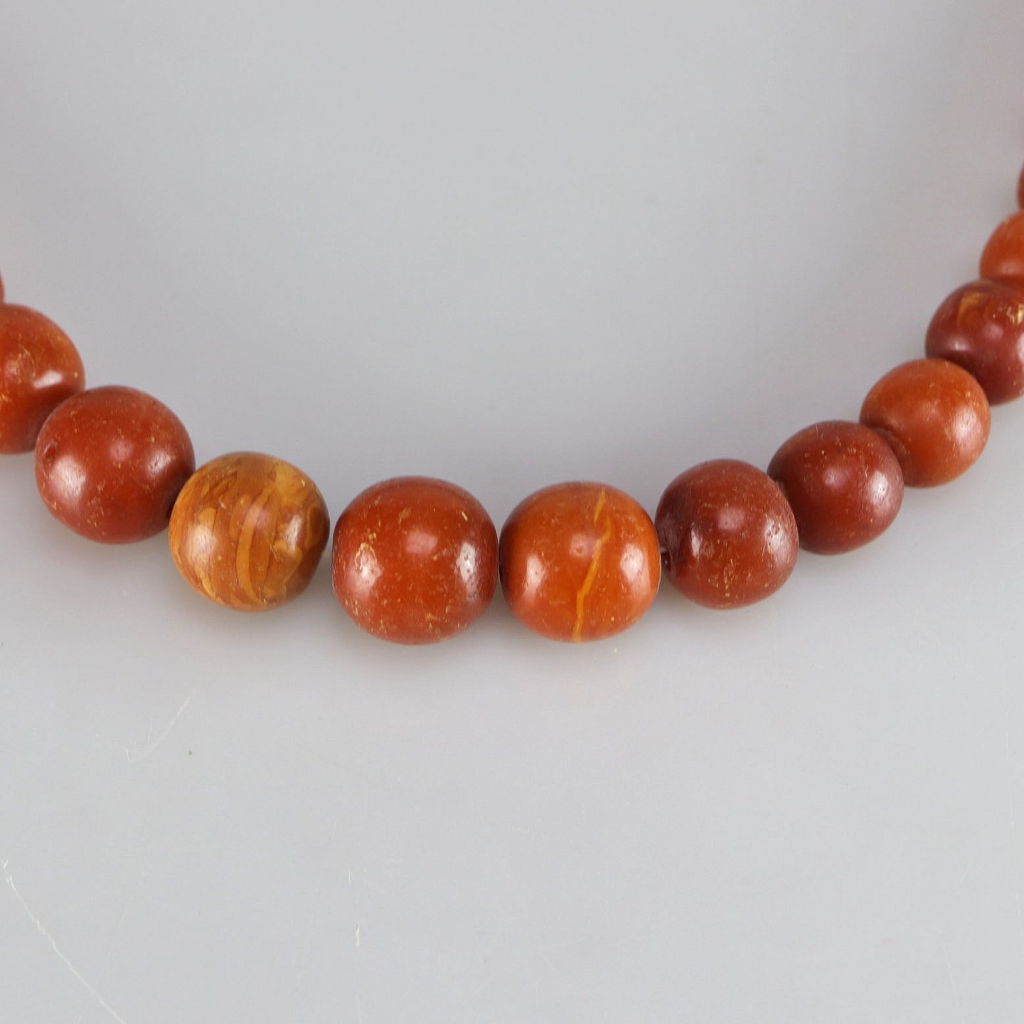 Glatslebet rav i varierende størrelser påsat kæde