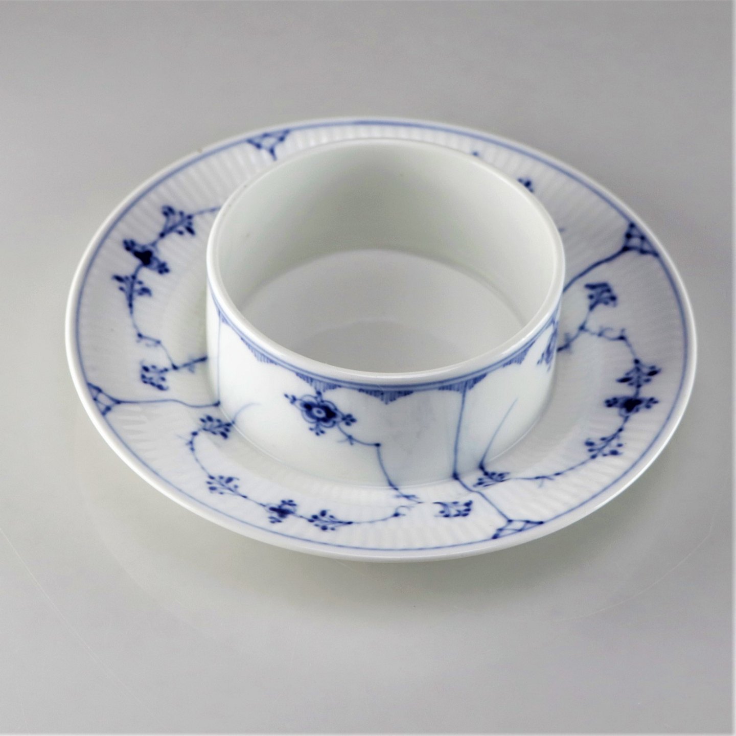 Kongelig Musselmalet riflet smørskål med fast underskål no 1/5