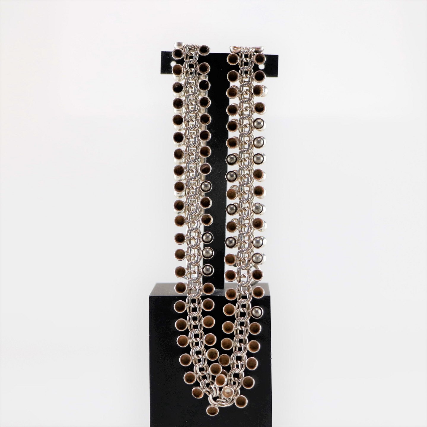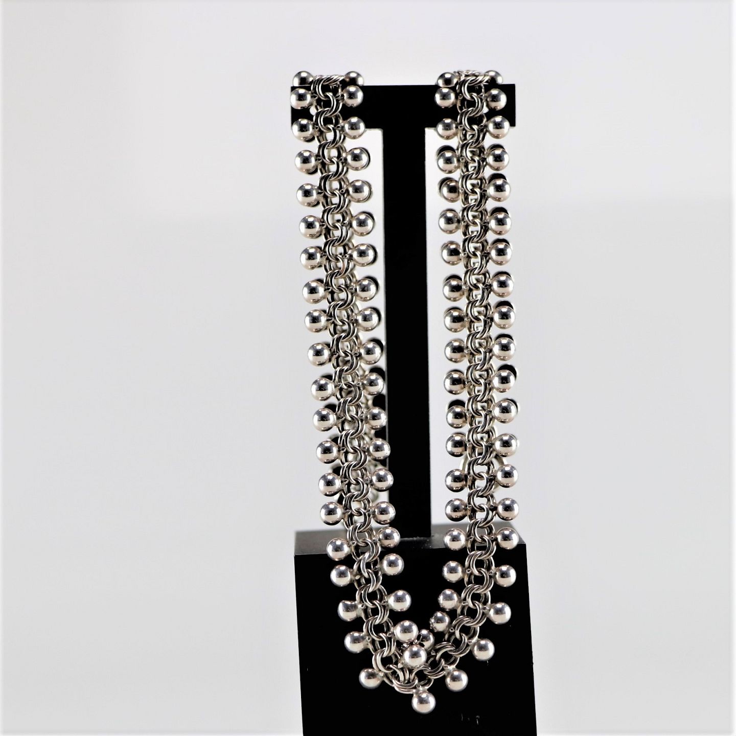 Sølv halskæde med ringe og kugler