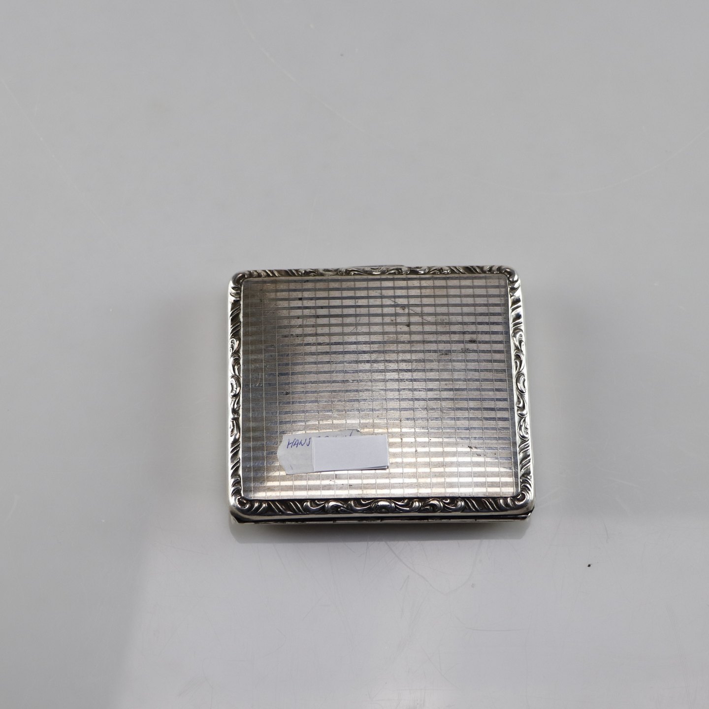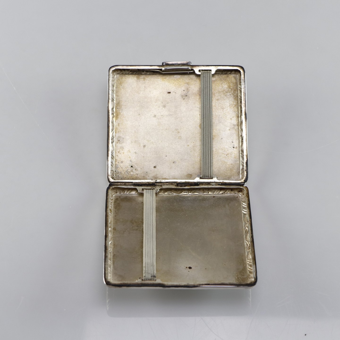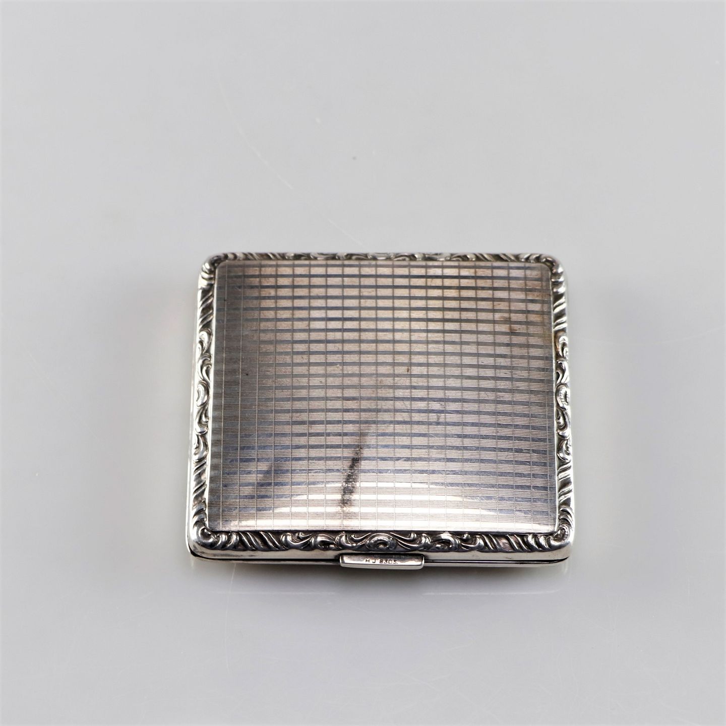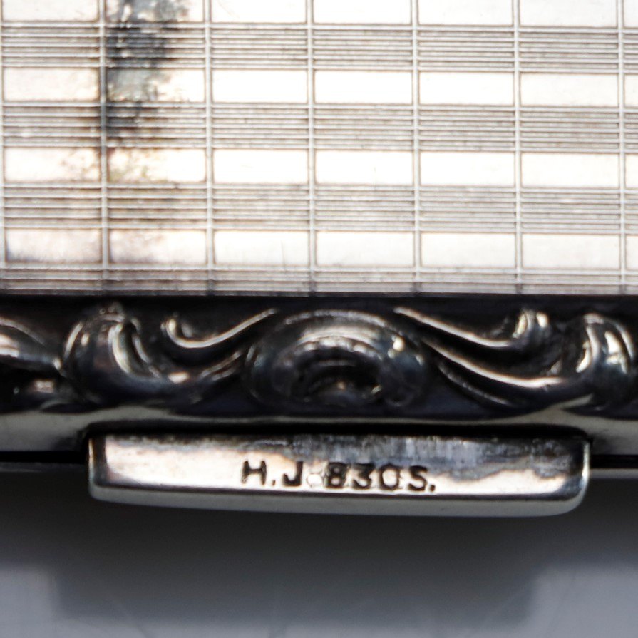Etui til cigaretter i sølv med mønsteret kant