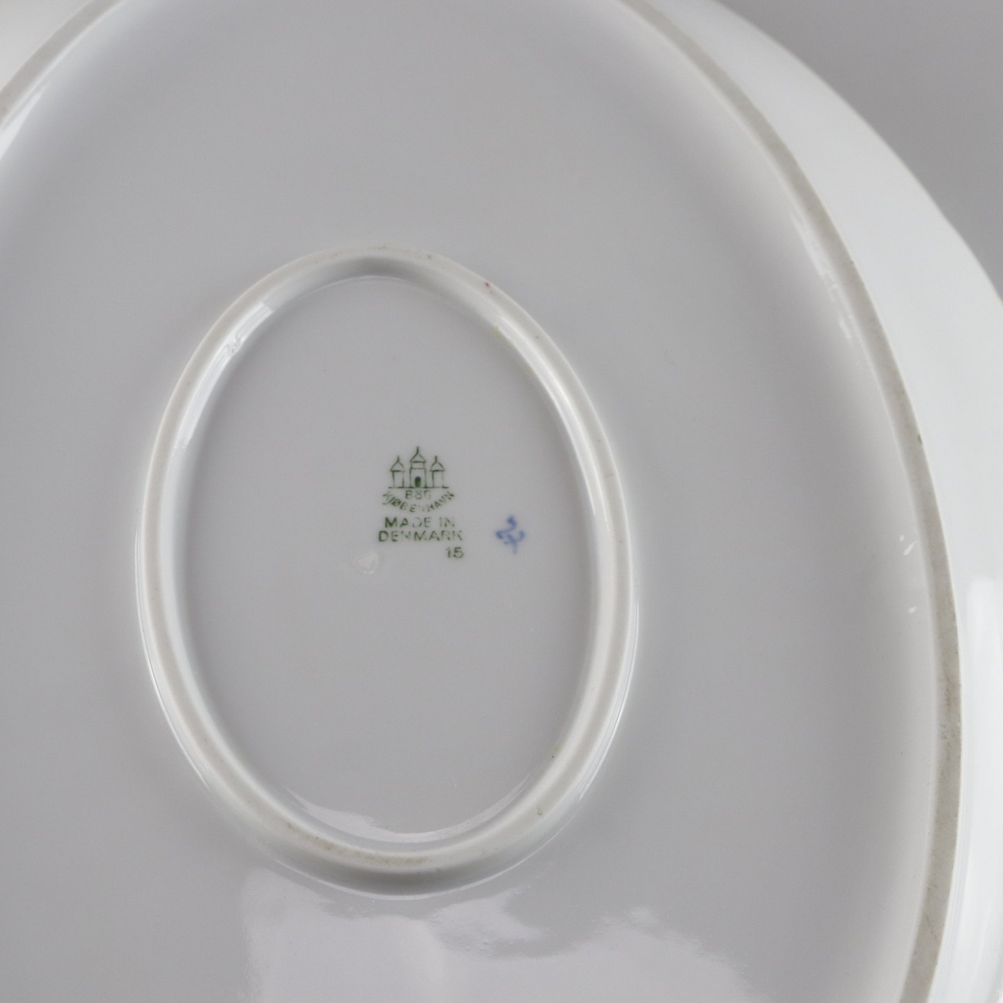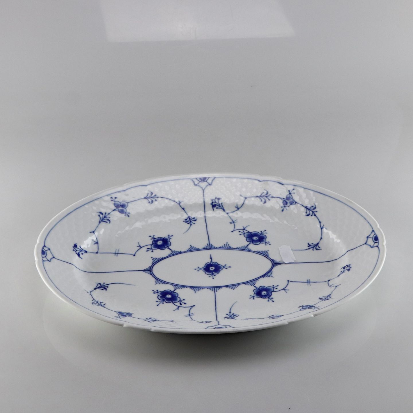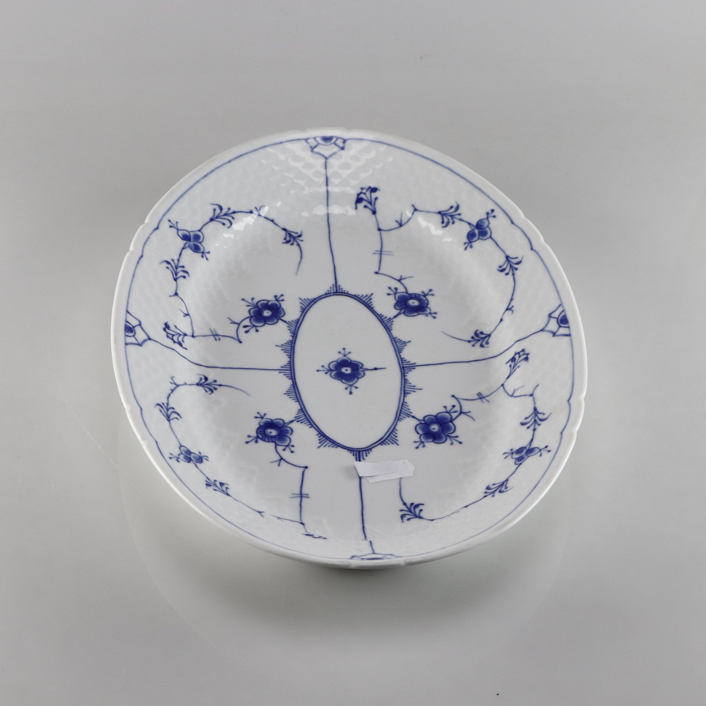 Hvidt porcelæn i skelform med dekoration af blå ranker